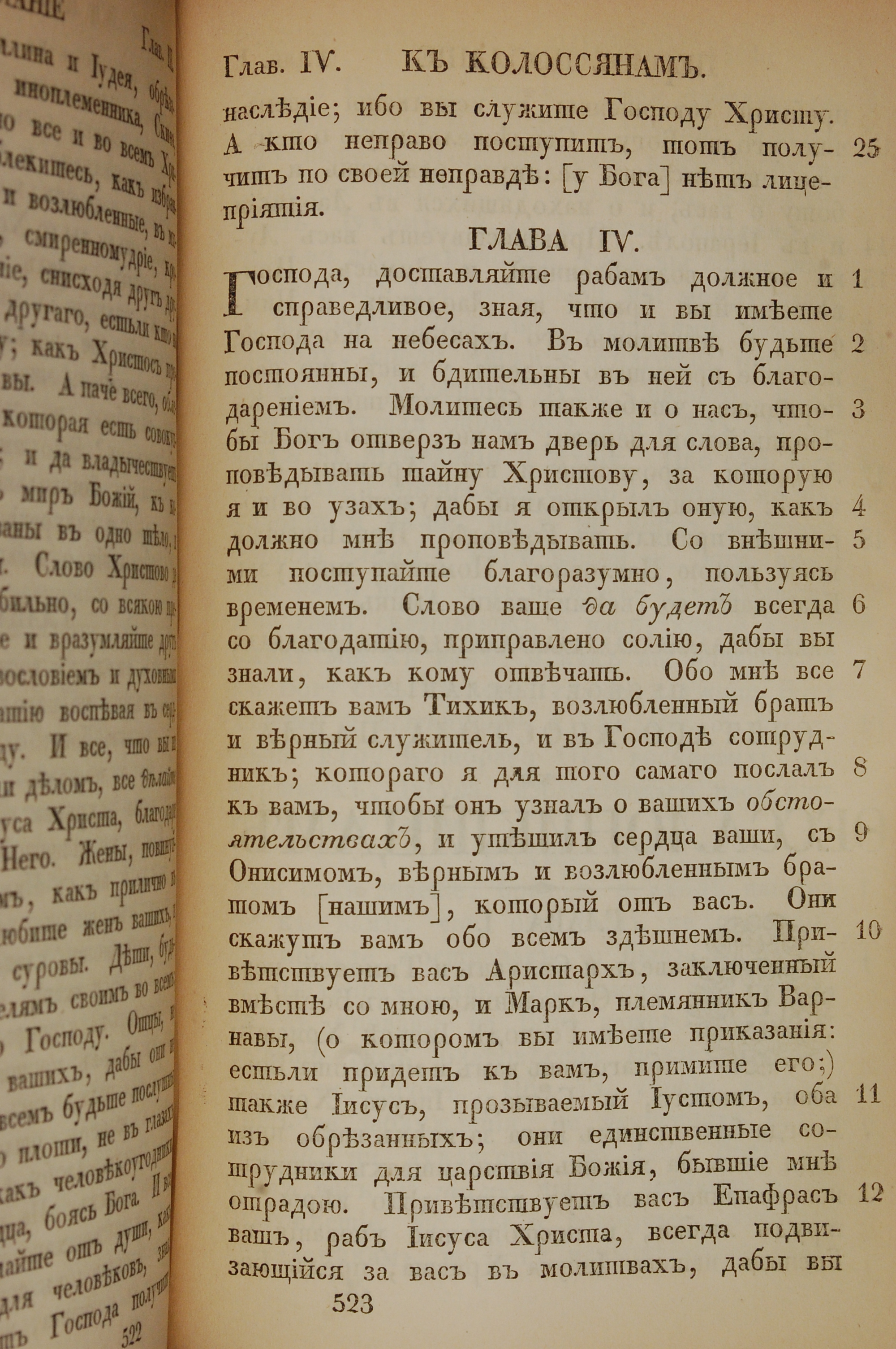 1855年俄文新約全書 歌羅西書 3 章 25 節到 4 章 12 節
