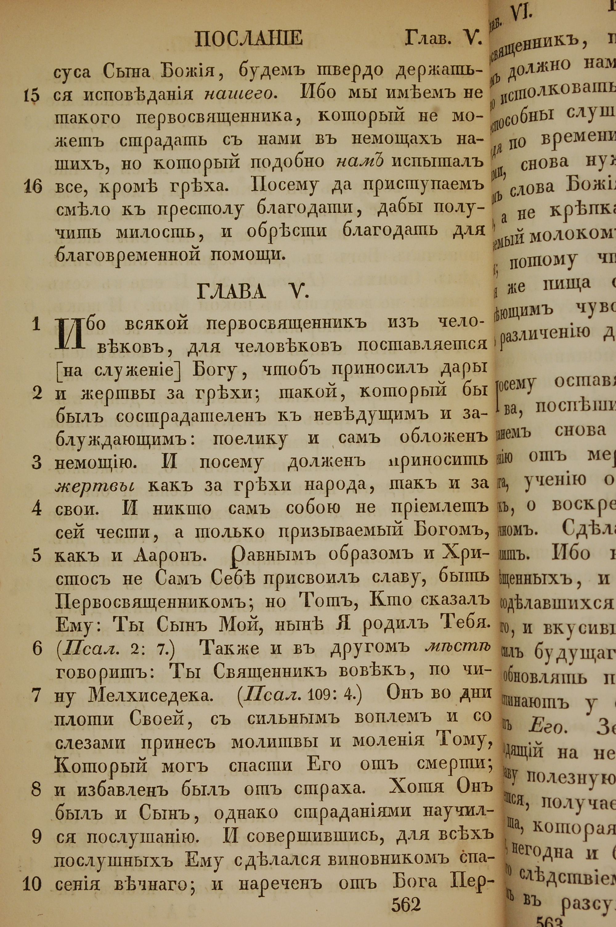 1855年俄文新約全書 希伯來書 4 章 15 節到 5 章 10 節