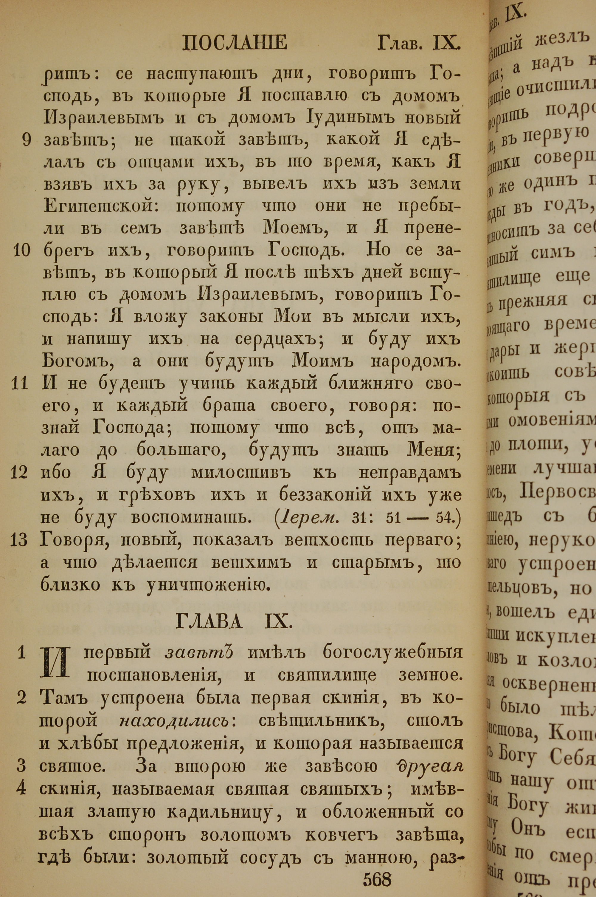 1855年俄文新約全書 希伯來書 8 章 9 節到 9 章 4 節