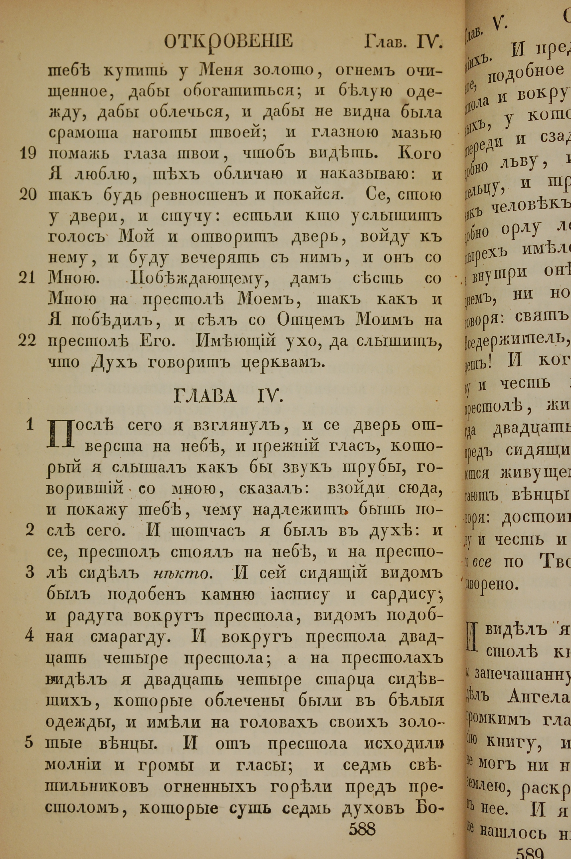 1855年俄文新約全書 啟示錄 3 章 19 節到 4 章 5 節
