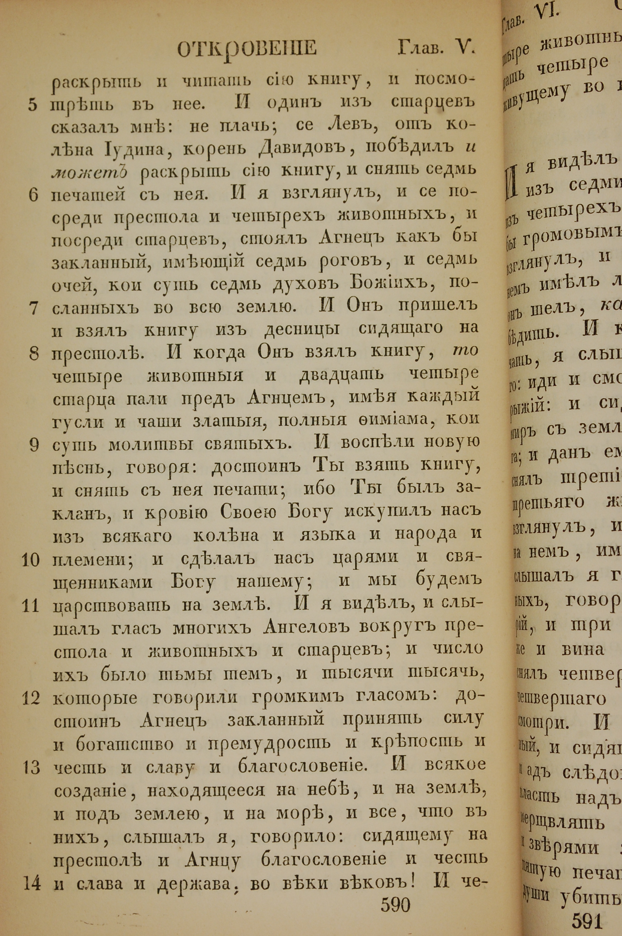 1855年俄文新約全書 啟示錄 5 章 5 節到 5 章 14 節