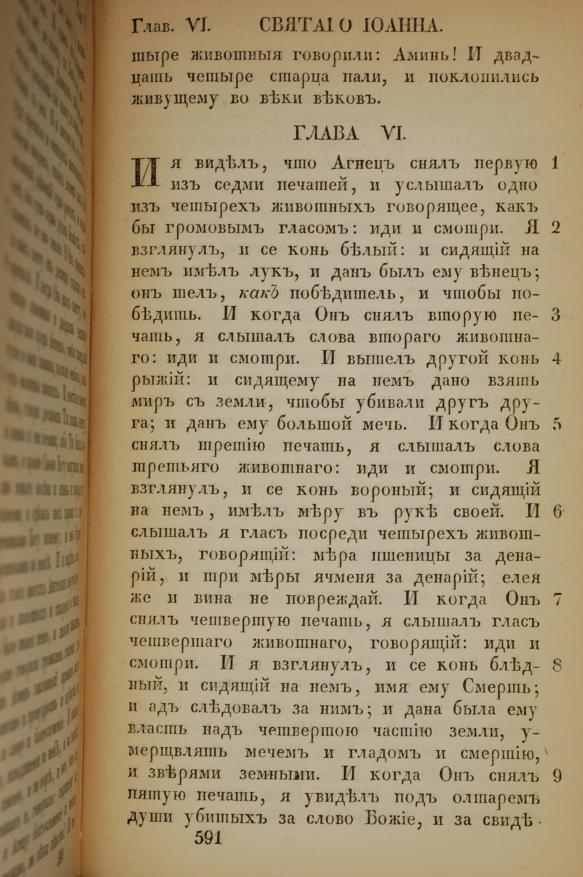 1855年俄文新約全書 啟示錄 6 章 1 節到 6 章 9 節