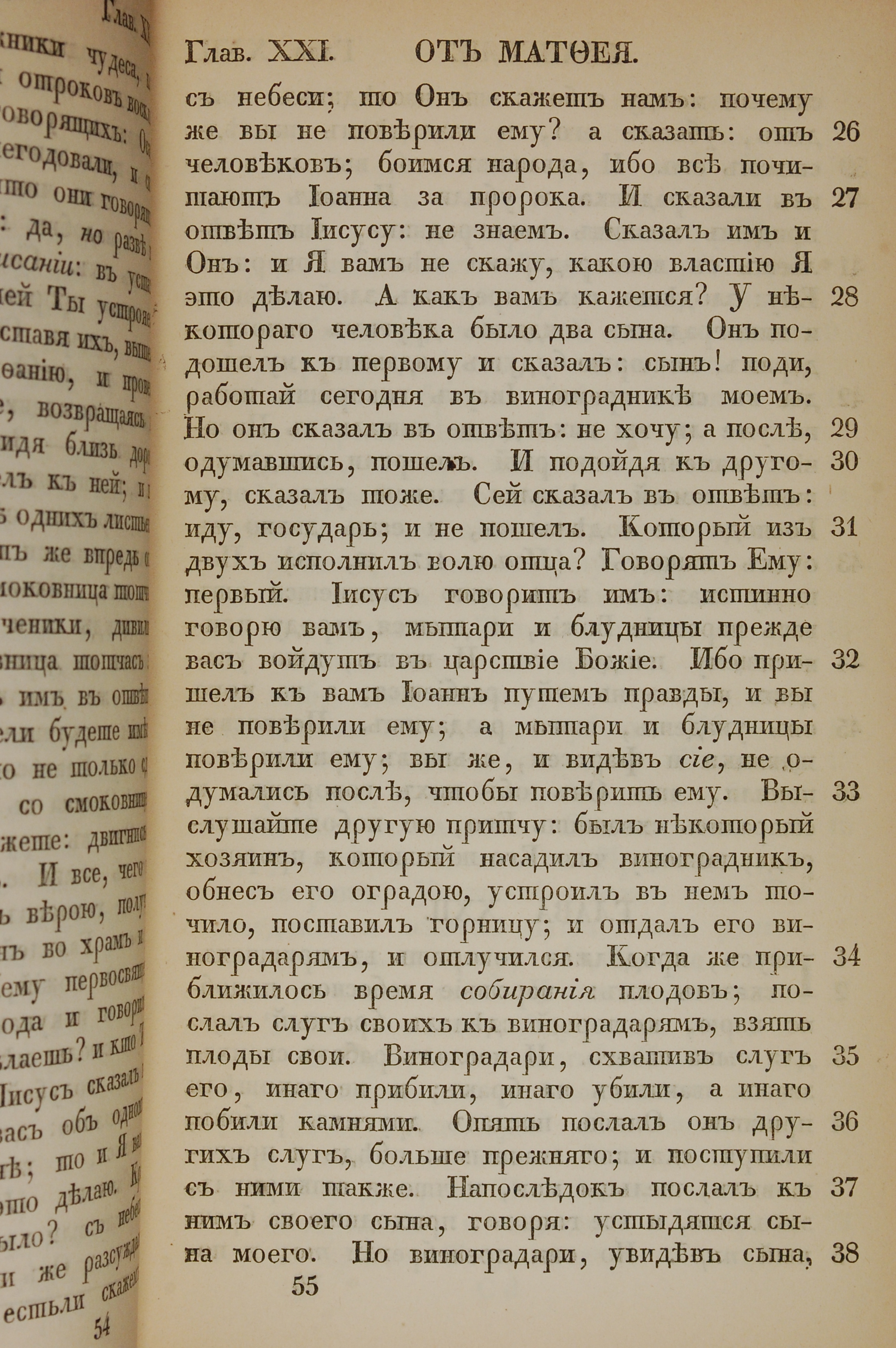 1855年俄文新約全書 馬太福音 21 章 26 節到 21 章 38 節