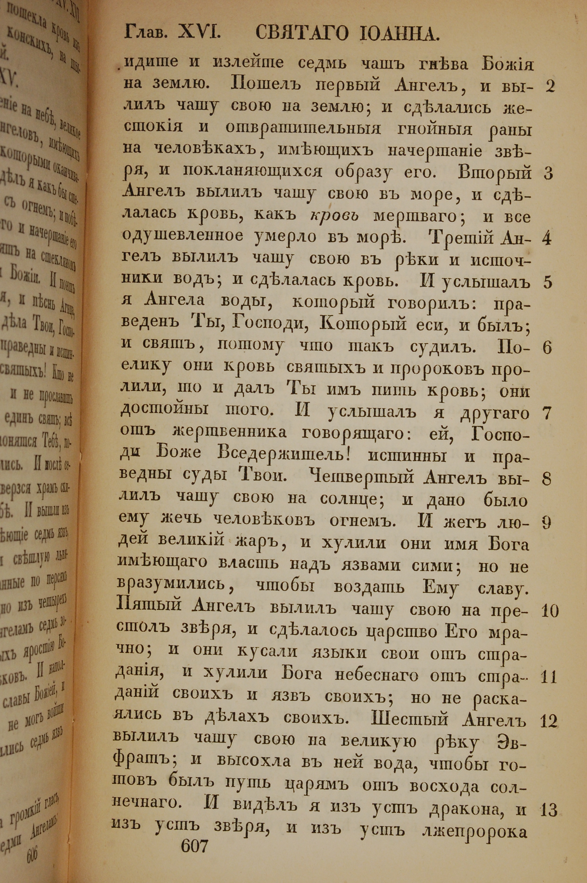 1855年俄文新約全書 啟示錄 16 章 2 節到 16 章 13 節