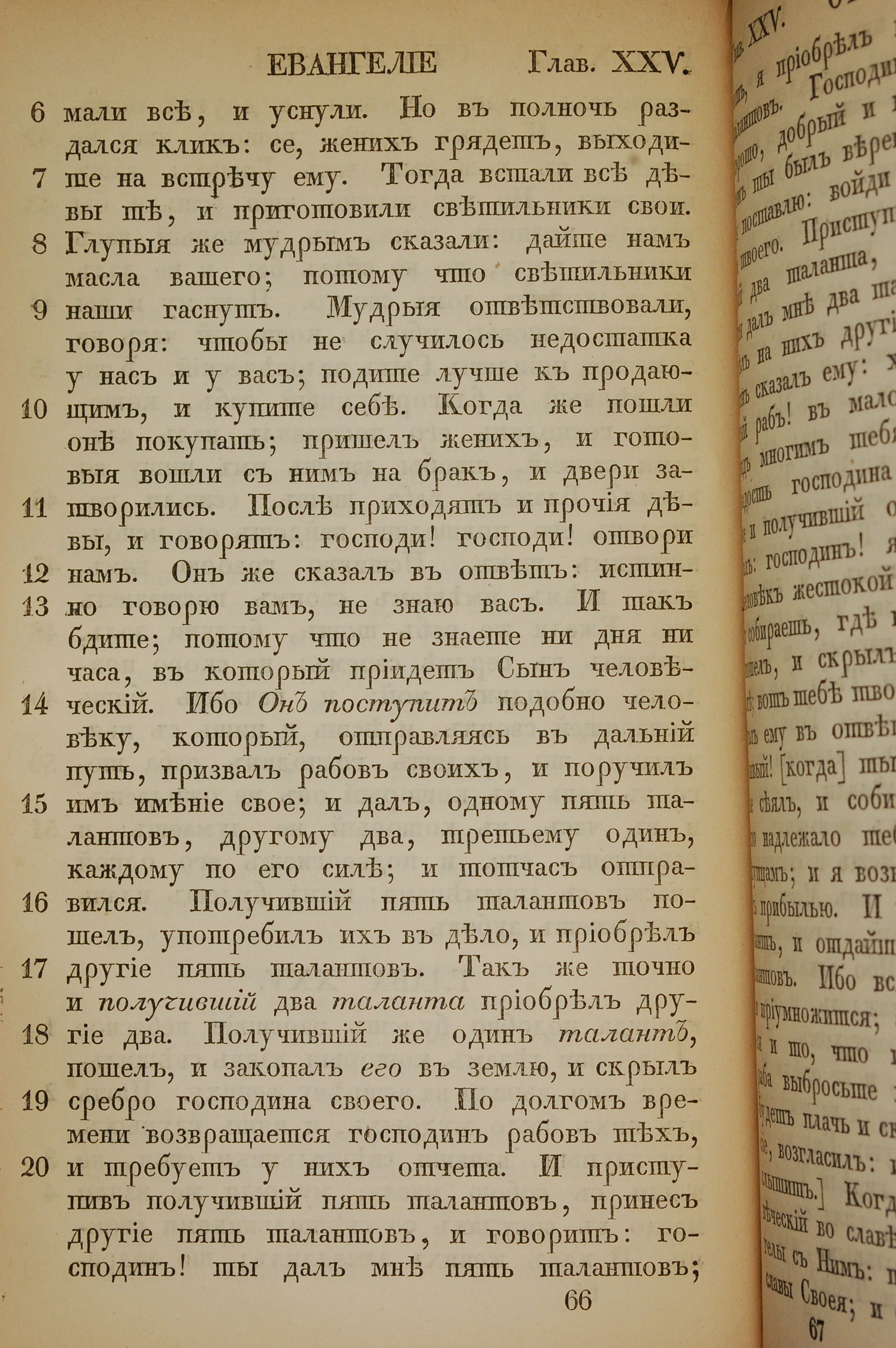 1855年俄文新約全書 馬太福音 25 章 6 節到 25 章 20 節