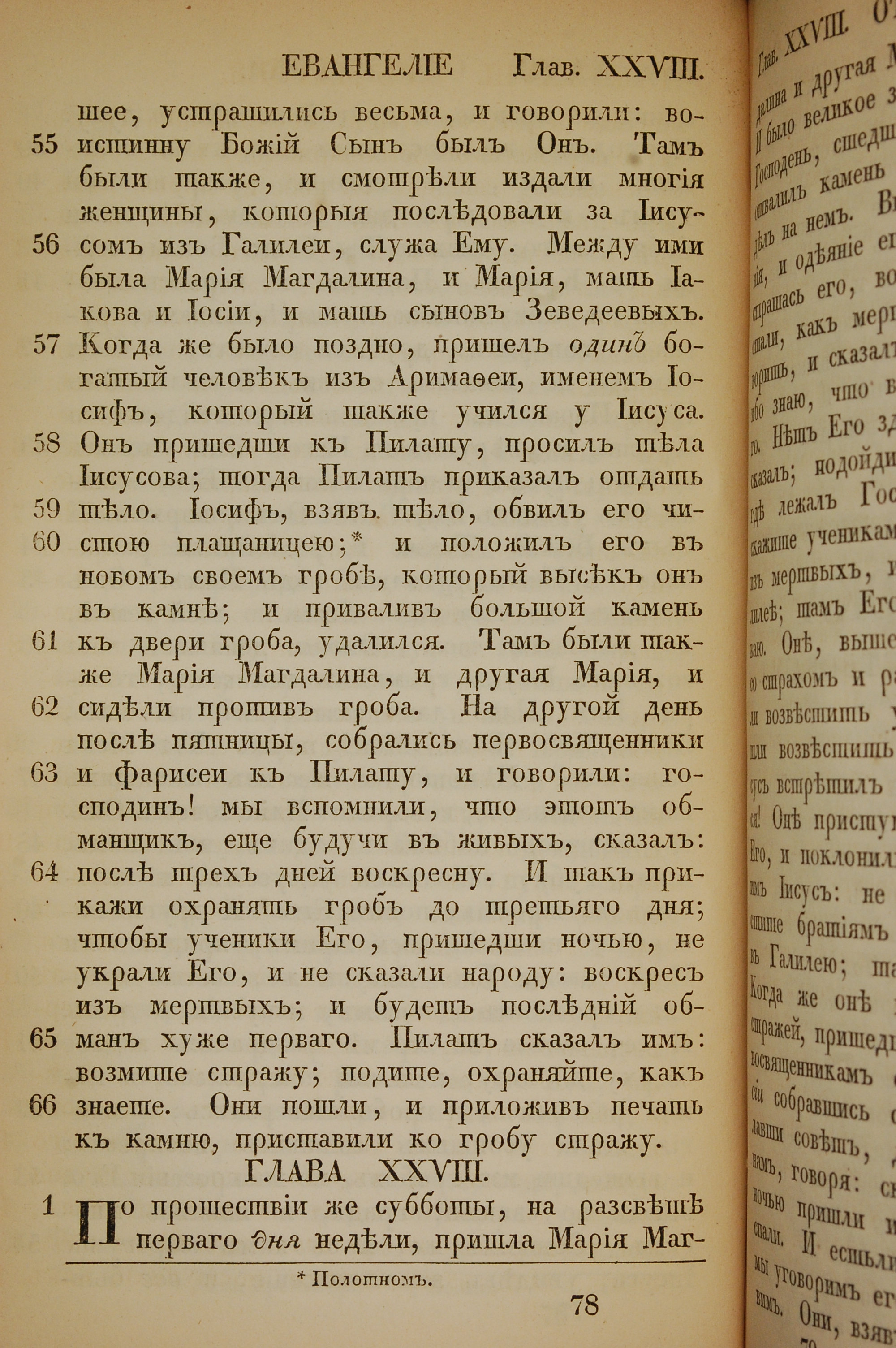 1855年俄文新約全書 馬太福音 27 章 55 節到 28 章 1 節