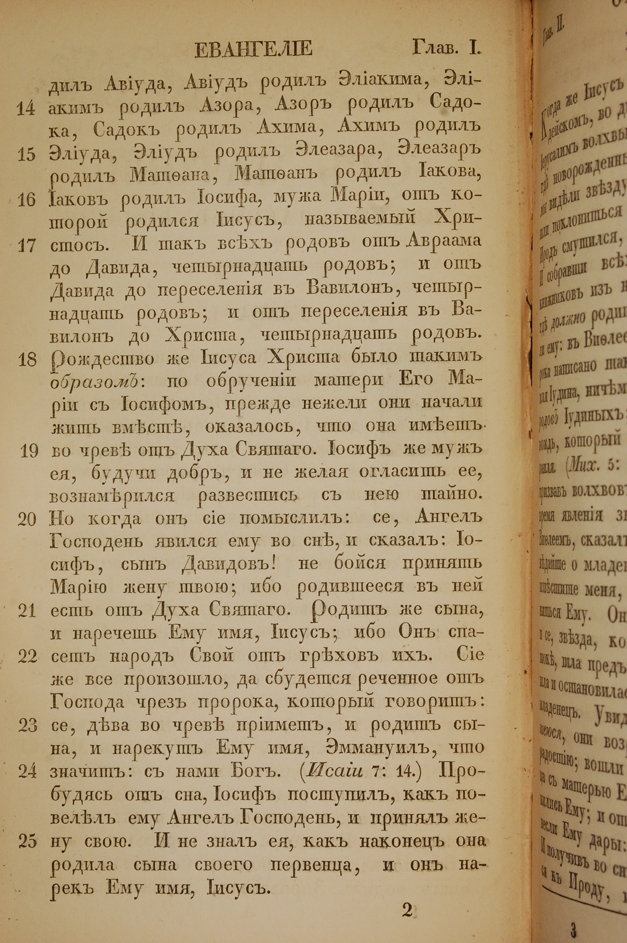 1855年俄文新約全書 馬太福音 1 章 14 節到 1 章 25 節