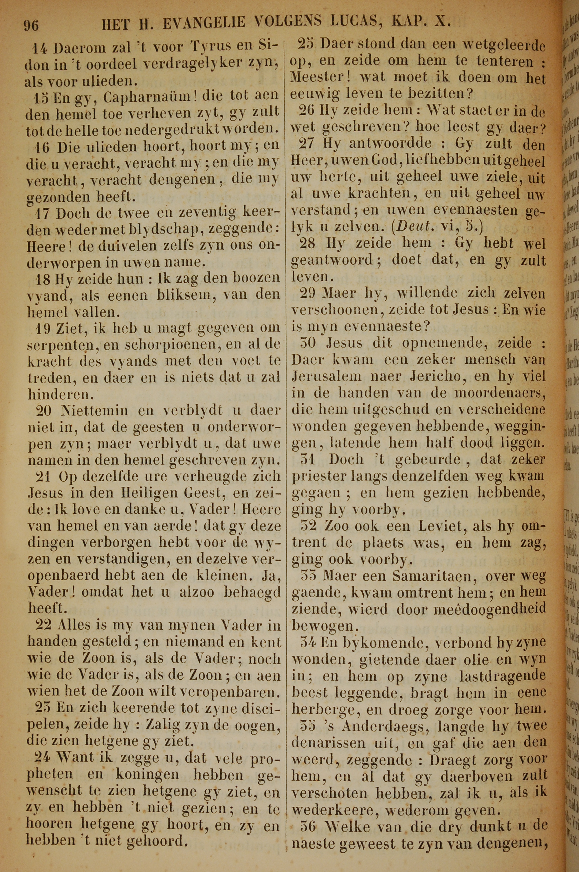 1717年荷蘭文新約全書 路加福音 10 章 14 節到 10 章 36 節