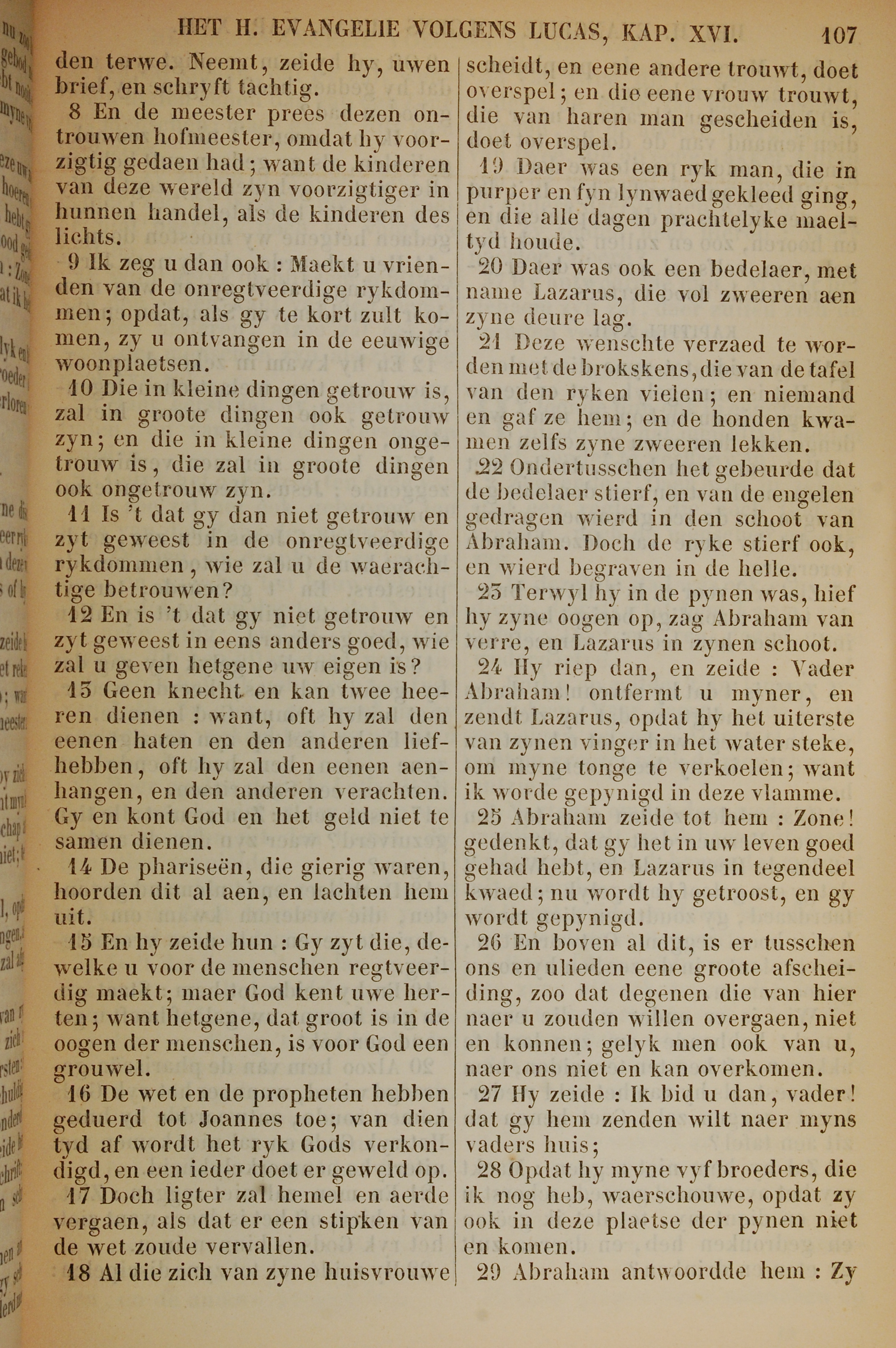 1717年荷蘭文新約全書 路加福音 16 章 8 節到 16 章 29 節