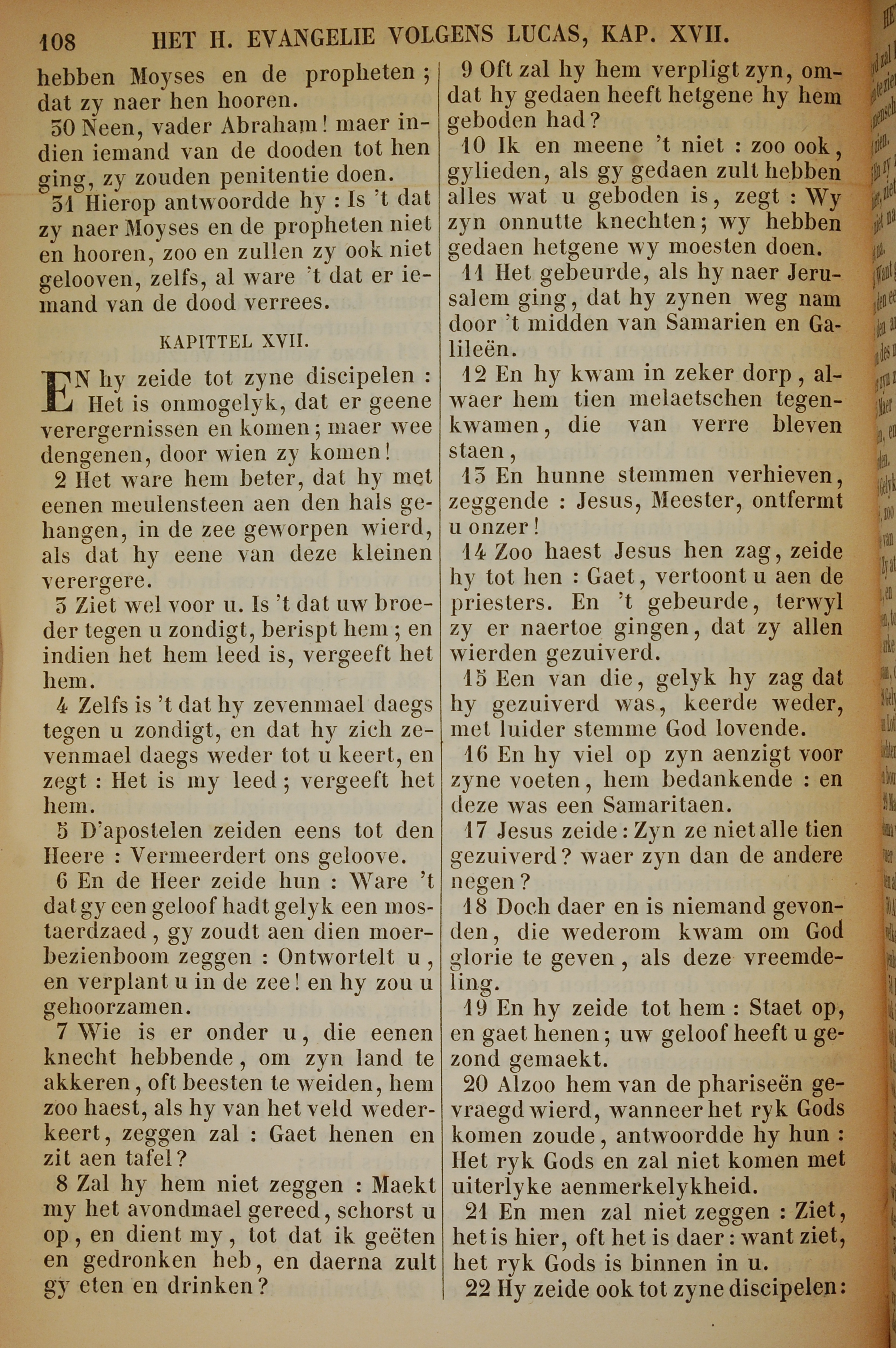 1717年荷蘭文新約全書 路加福音 16 章 30 節到 17 章 22 節