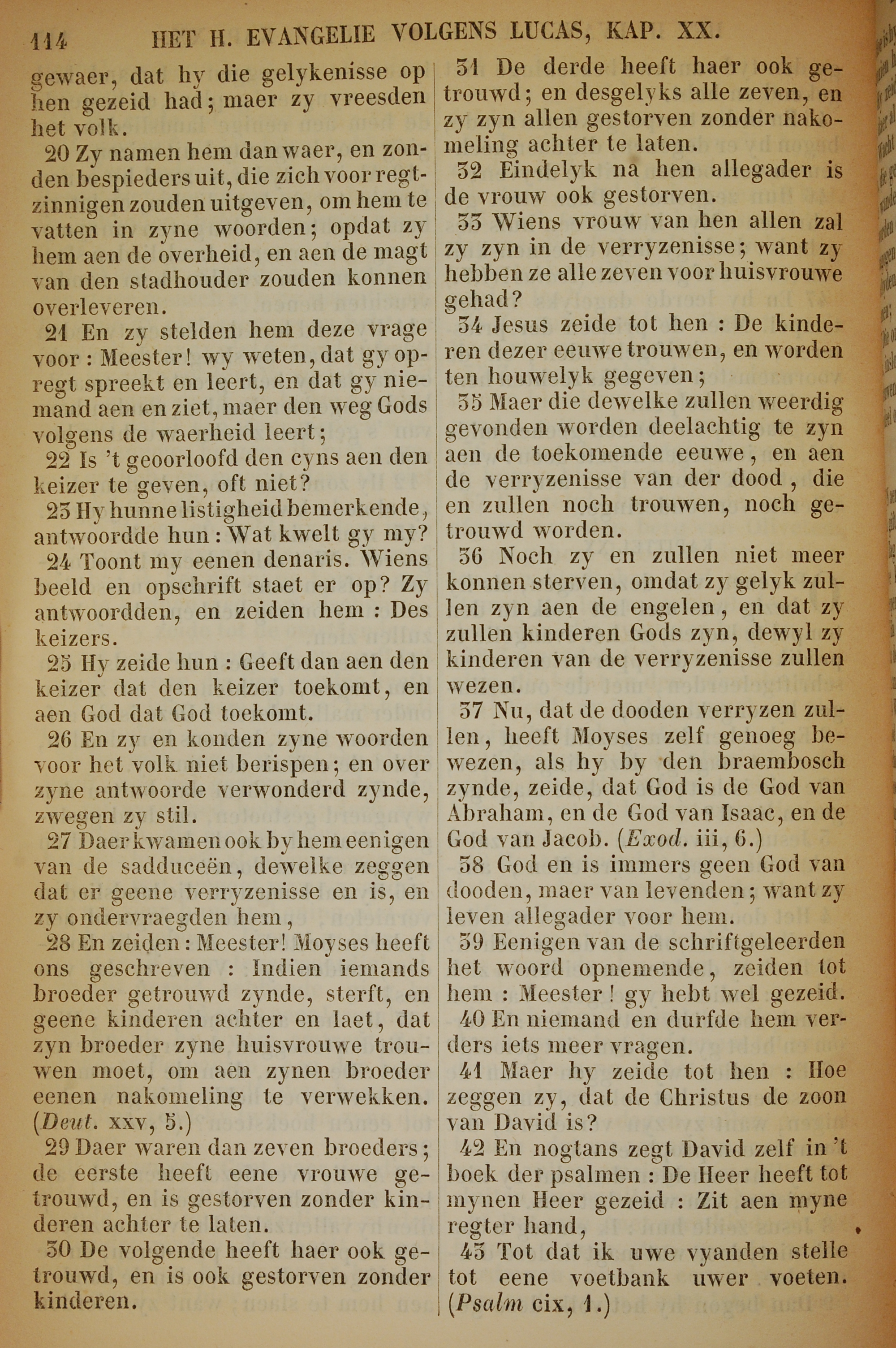 1717年荷蘭文新約全書 路加福音 20 章 20 節到 20 章 43 節