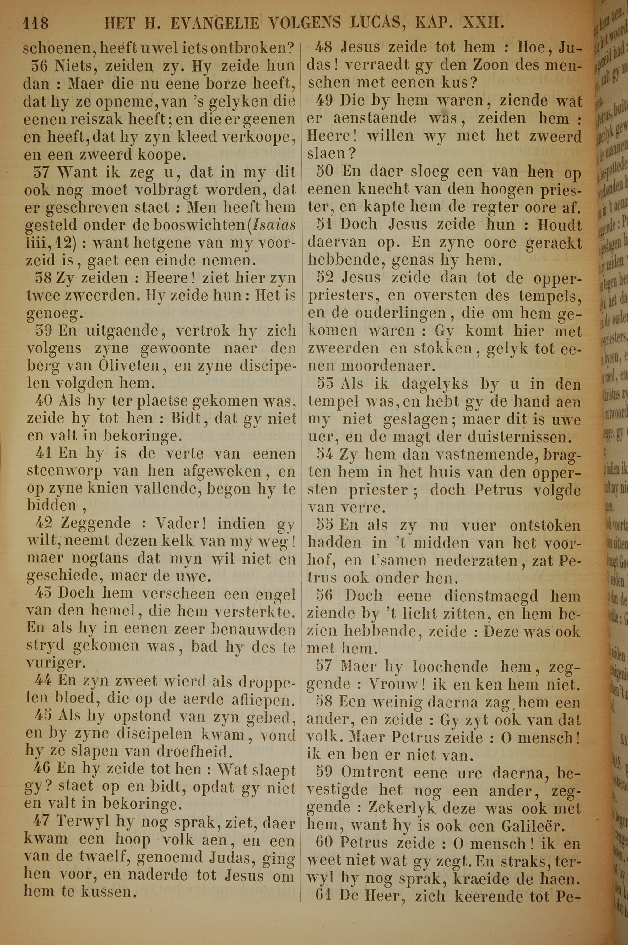 1717年荷蘭文新約全書 路加福音 22 章 36 節到 22 章 61 節