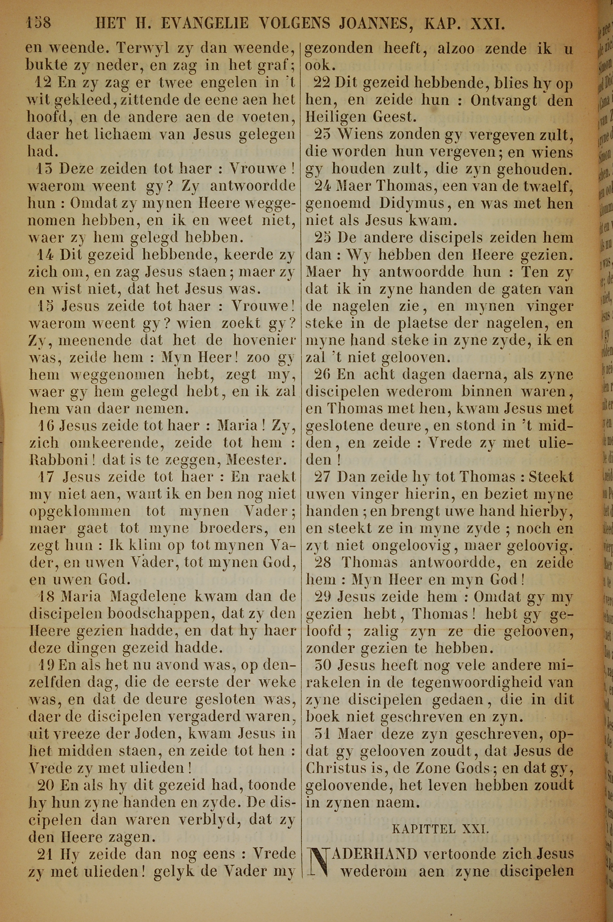 1717年荷蘭文新約全書 約翰福音 20 章 12 節到 21 章 1 節