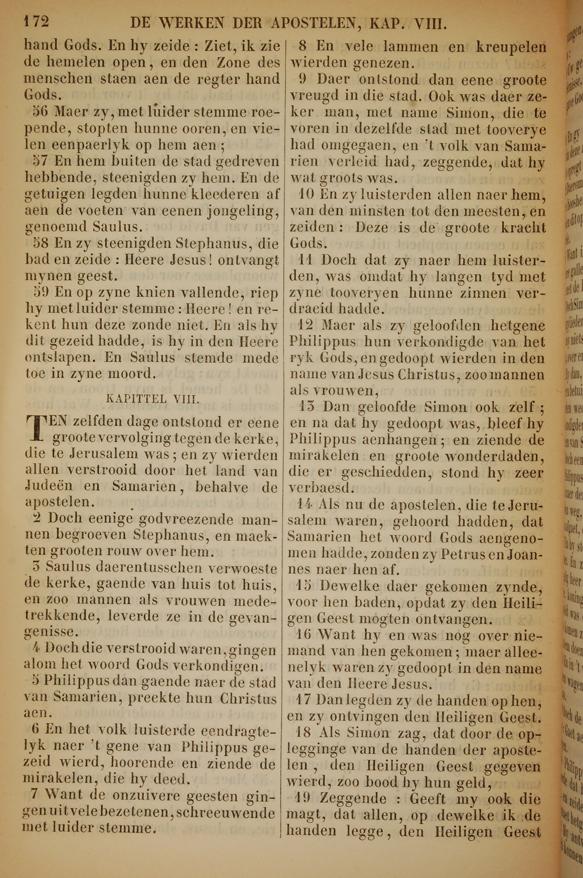 1717年荷蘭文新約全書 使徒行傳 7 章 56 節到 8 章 19 節