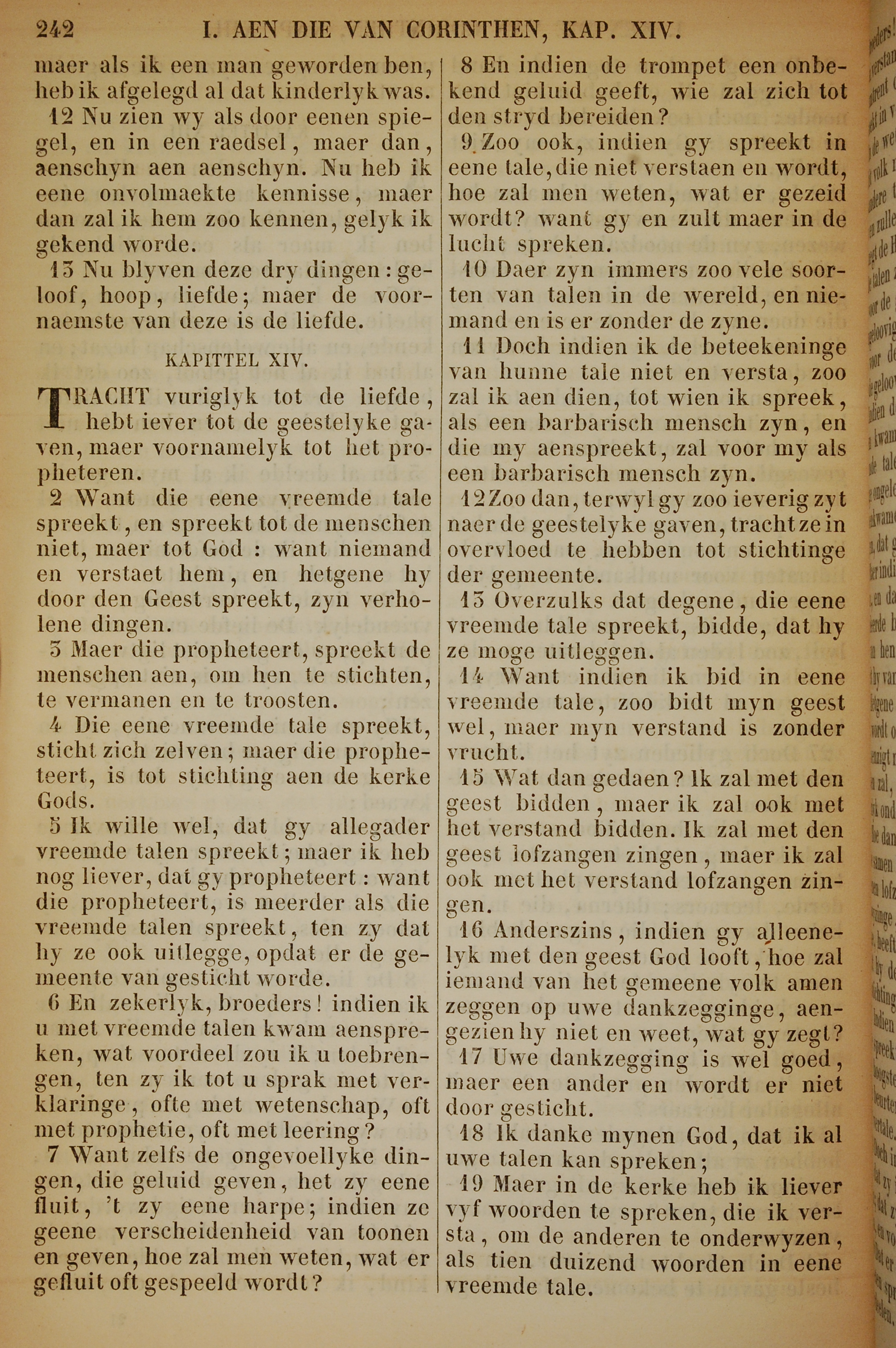 1717年荷蘭文新約全書 哥林多前書 13 章 12 節到 14 章 19 節
