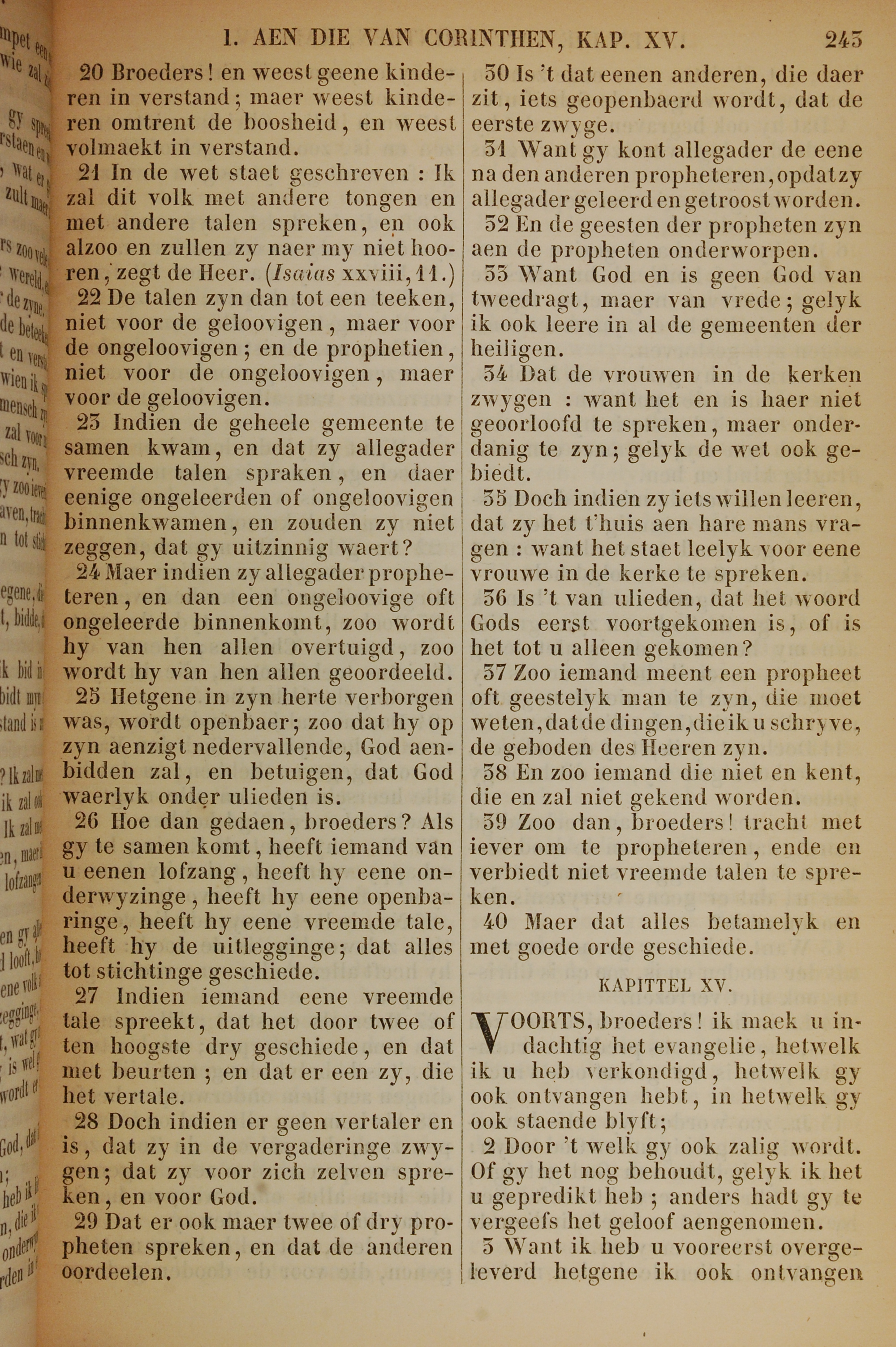1717年荷蘭文新約全書 哥林多前書 14 章 20 節到 15 章 3 節