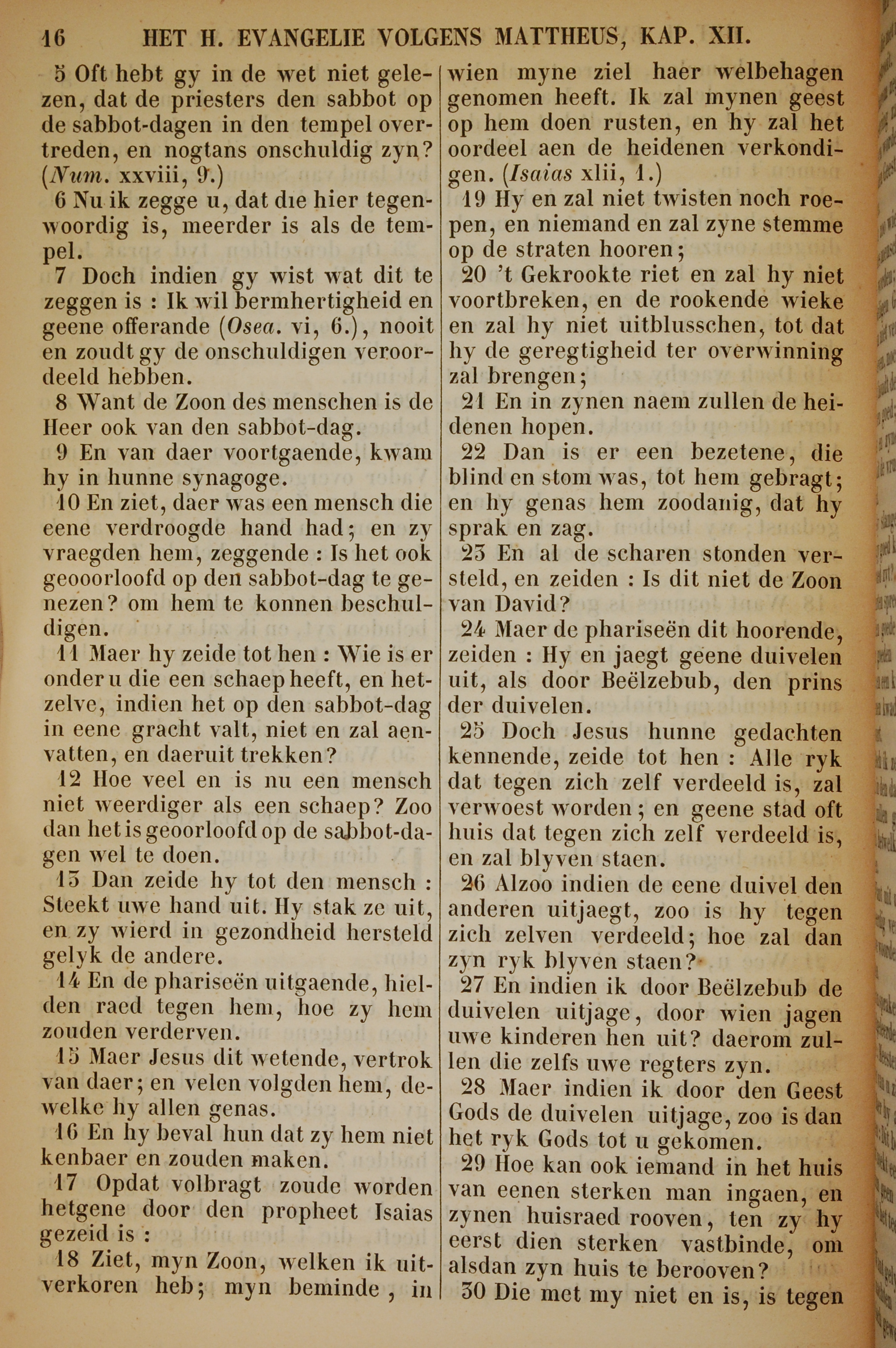 1717年荷蘭文新約全書 馬太福音 12 章 5 節到 12 章 30 節