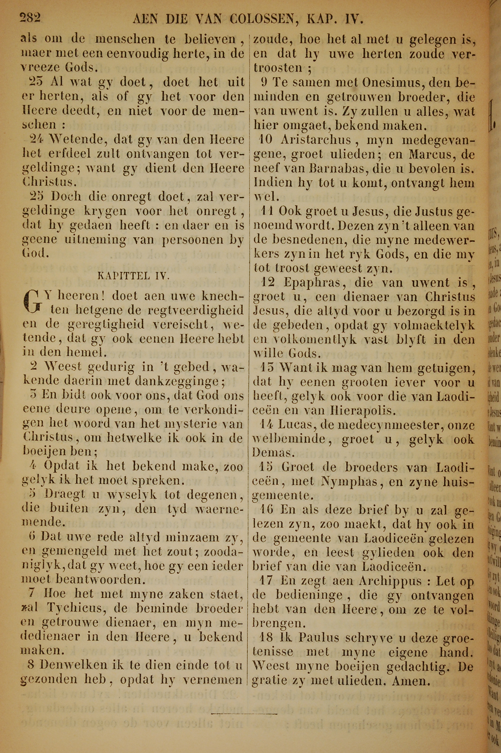 1717年荷蘭文新約全書 歌羅西書 3 章 23 節到 4 章 18 節