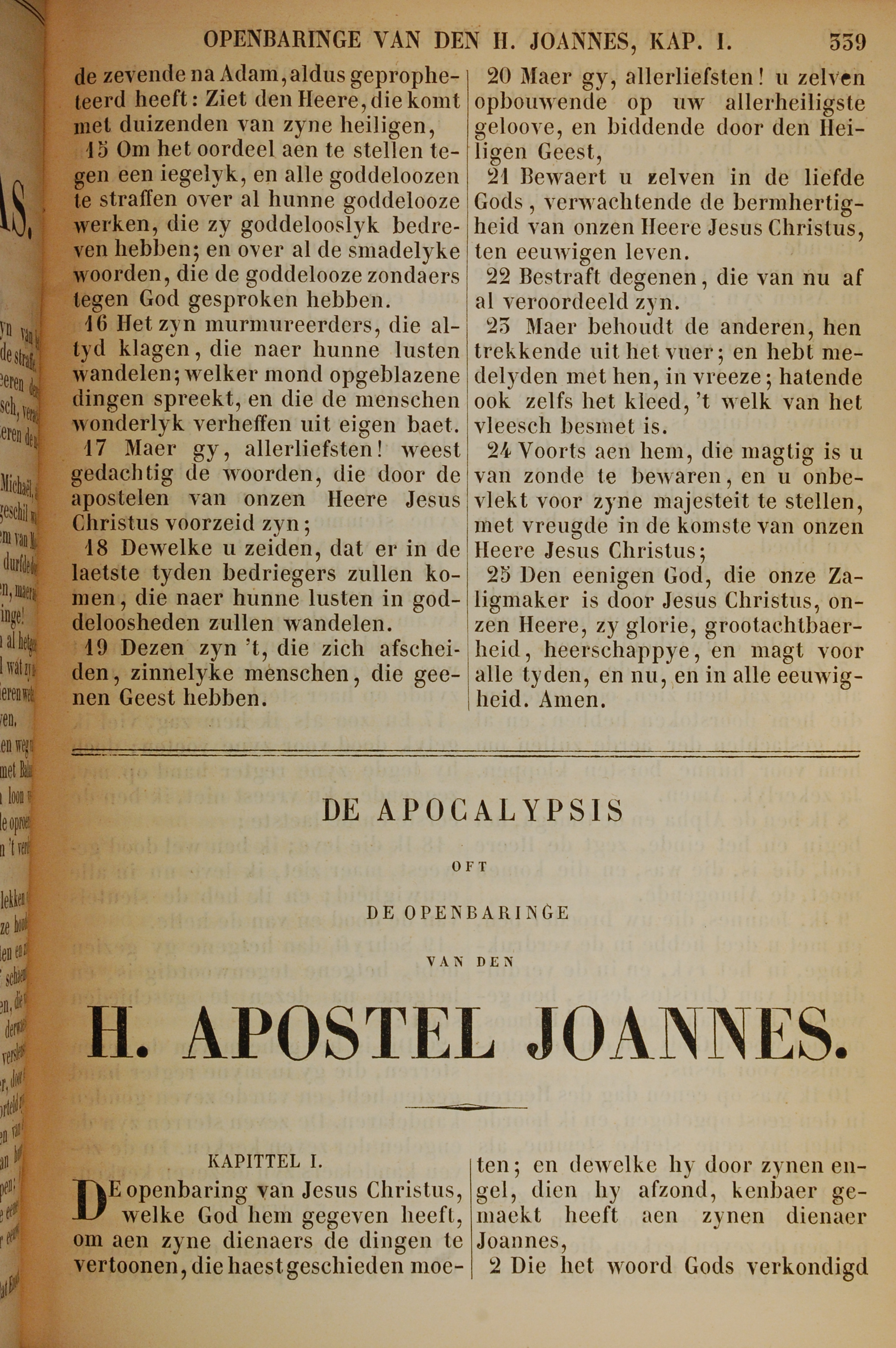 1717年荷蘭文新約全書 啟示錄 1 章 1 節到 1 章 2 節