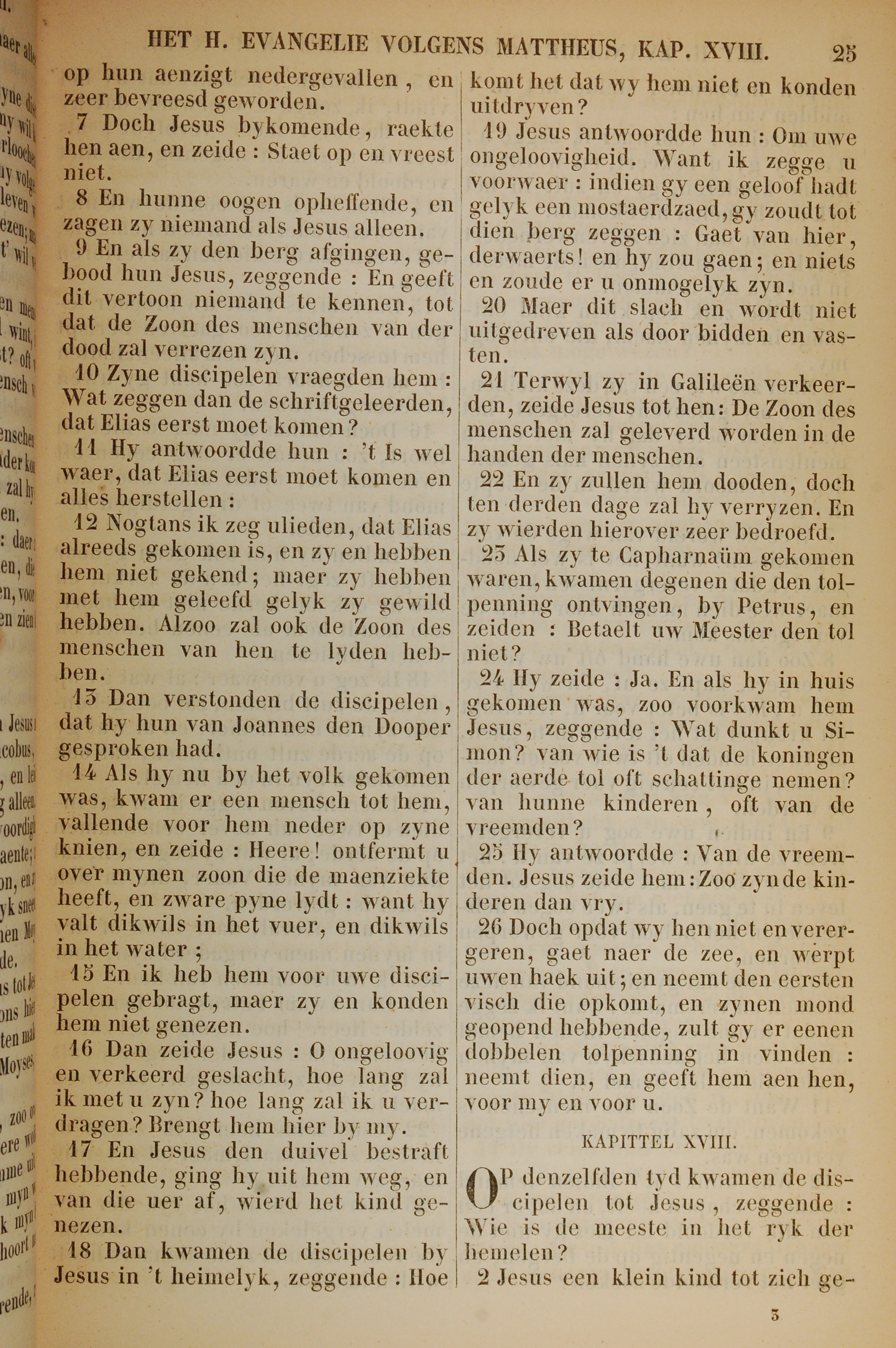 1717年荷蘭文新約全書 馬太福音 17 章 7 節到 18 章 2 節