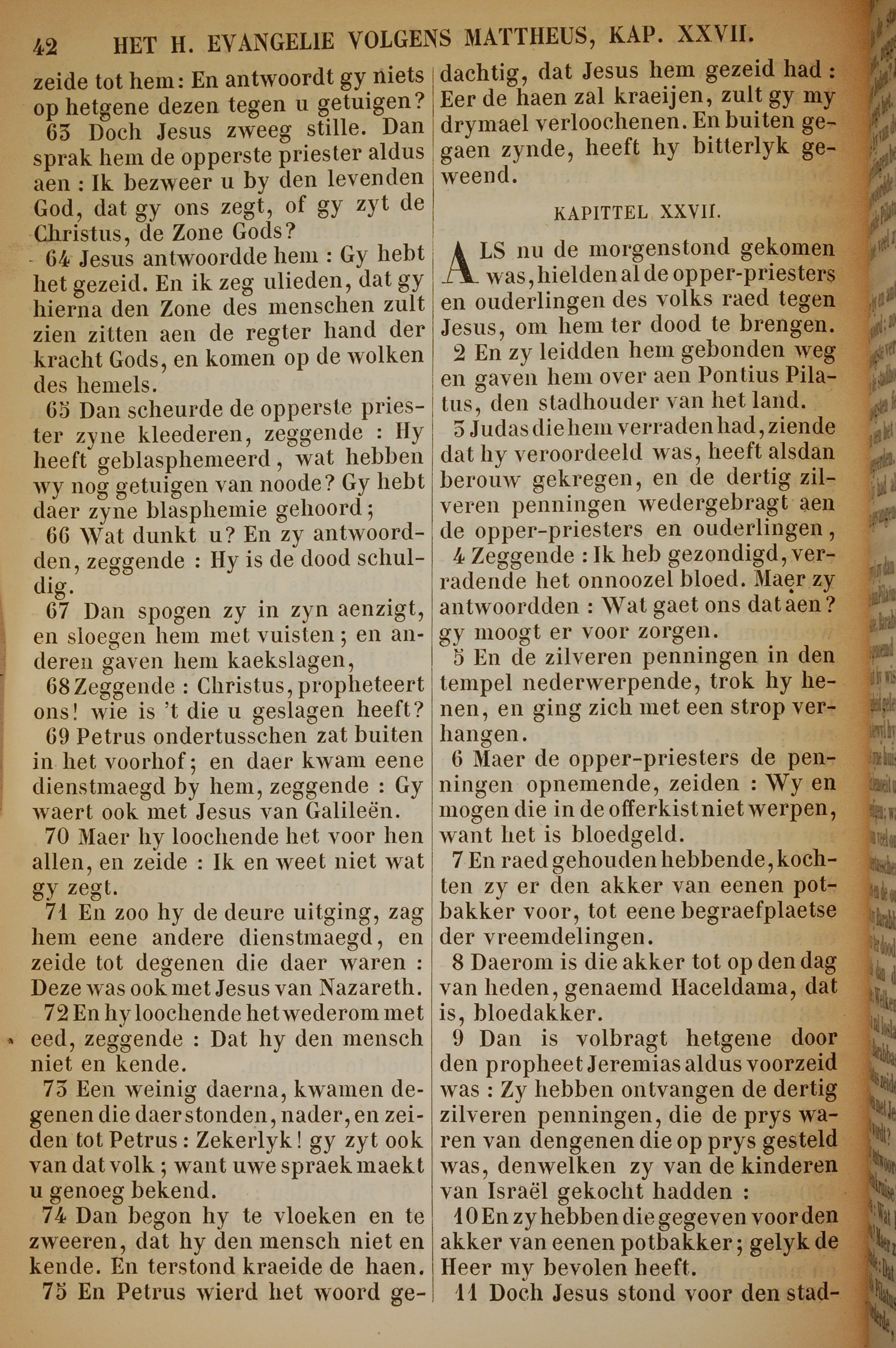 1717年荷蘭文新約全書 馬太福音 26 章 63 節到 27 章 11 節