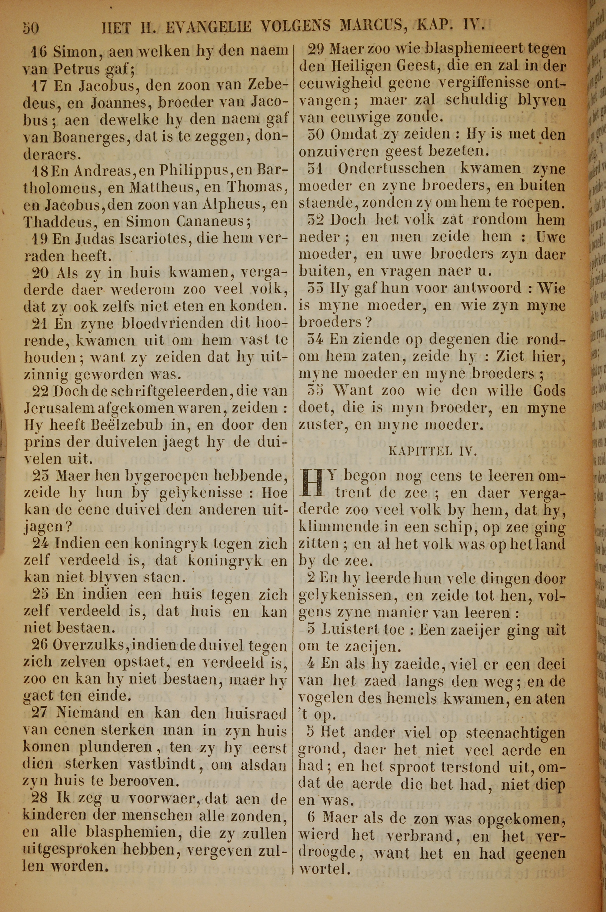 1717年荷蘭文新約全書 馬可福音 3 章 16 節到 4 章 6 節
