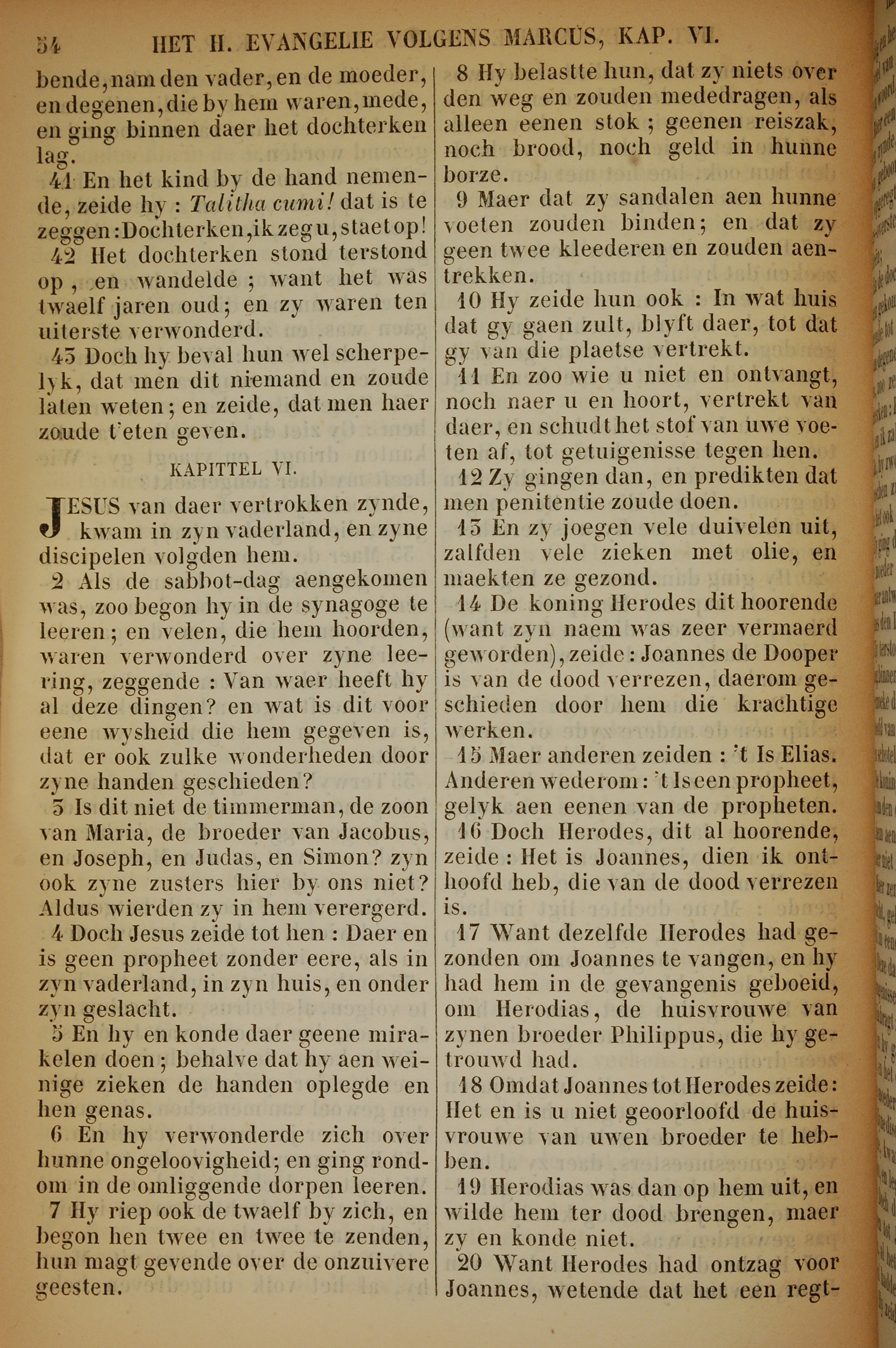1717年荷蘭文新約全書 馬可福音 5 章 41 節到 6 章 20 節