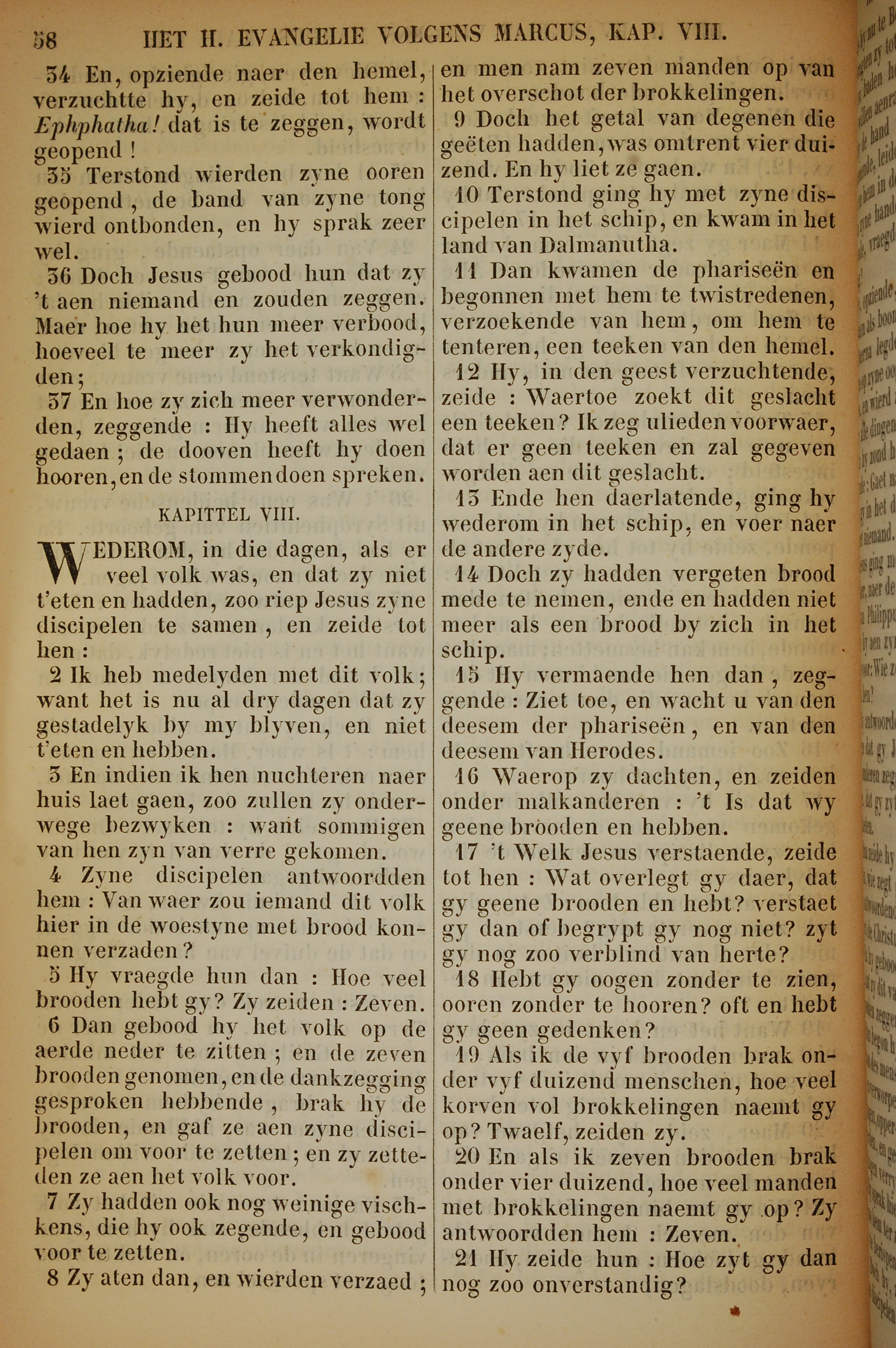1717年荷蘭文新約全書 馬可福音 7 章 34 節到 8 章 21 節