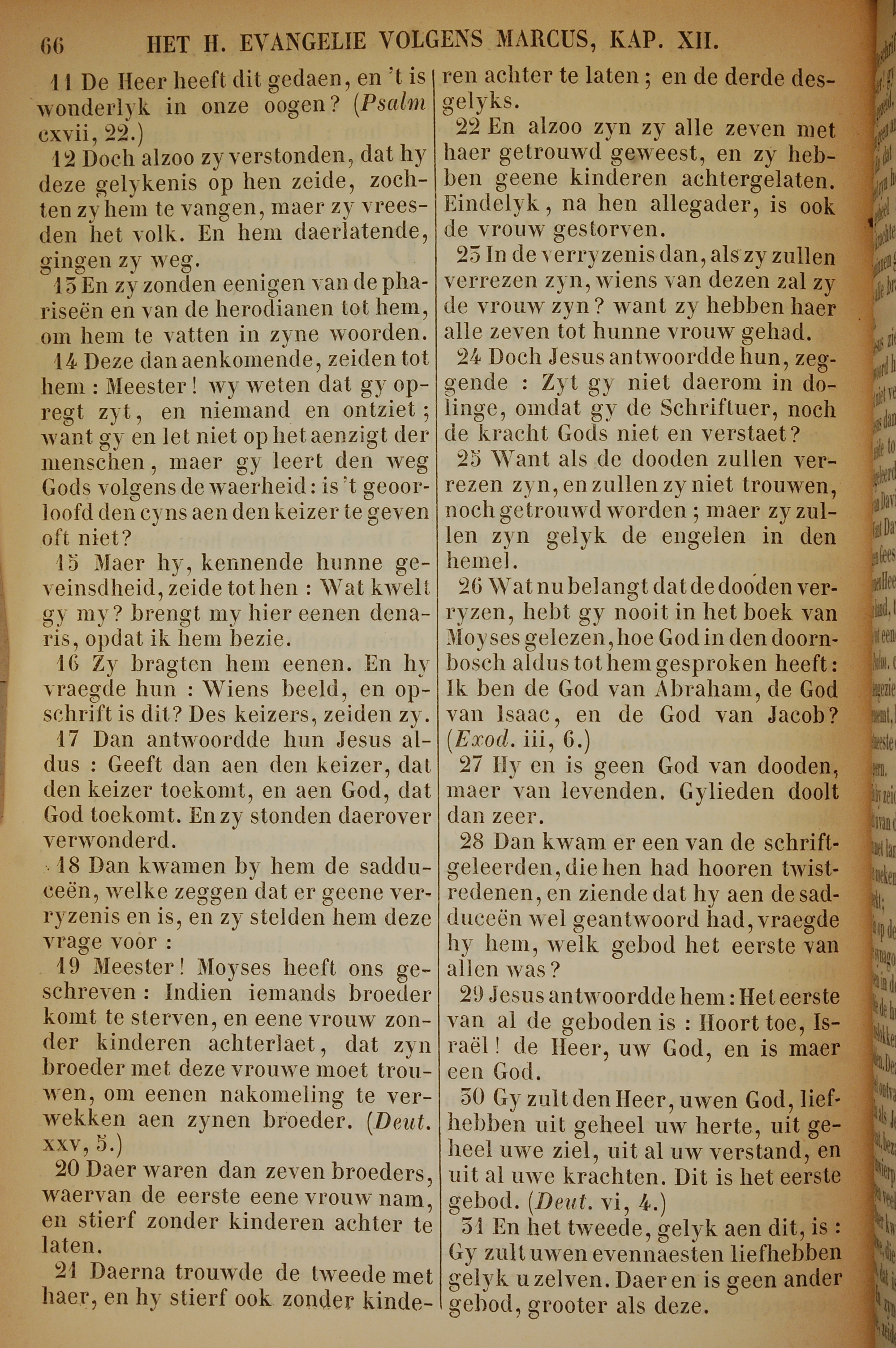 1717年荷蘭文新約全書 馬可福音 12 章 11 節到 12 章 31 節