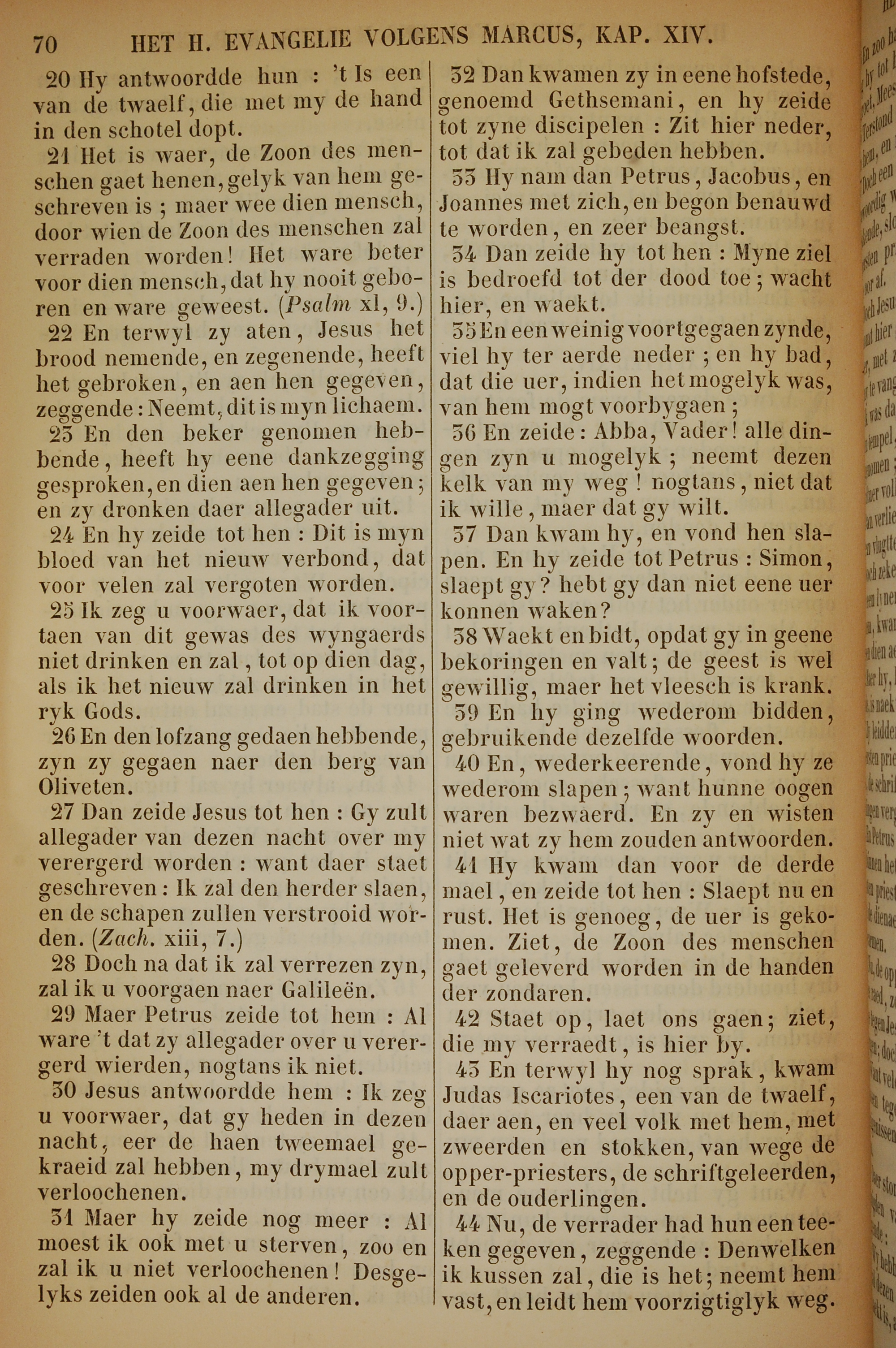 1717年荷蘭文新約全書 馬可福音 14 章 20 節到 14 章 44 節