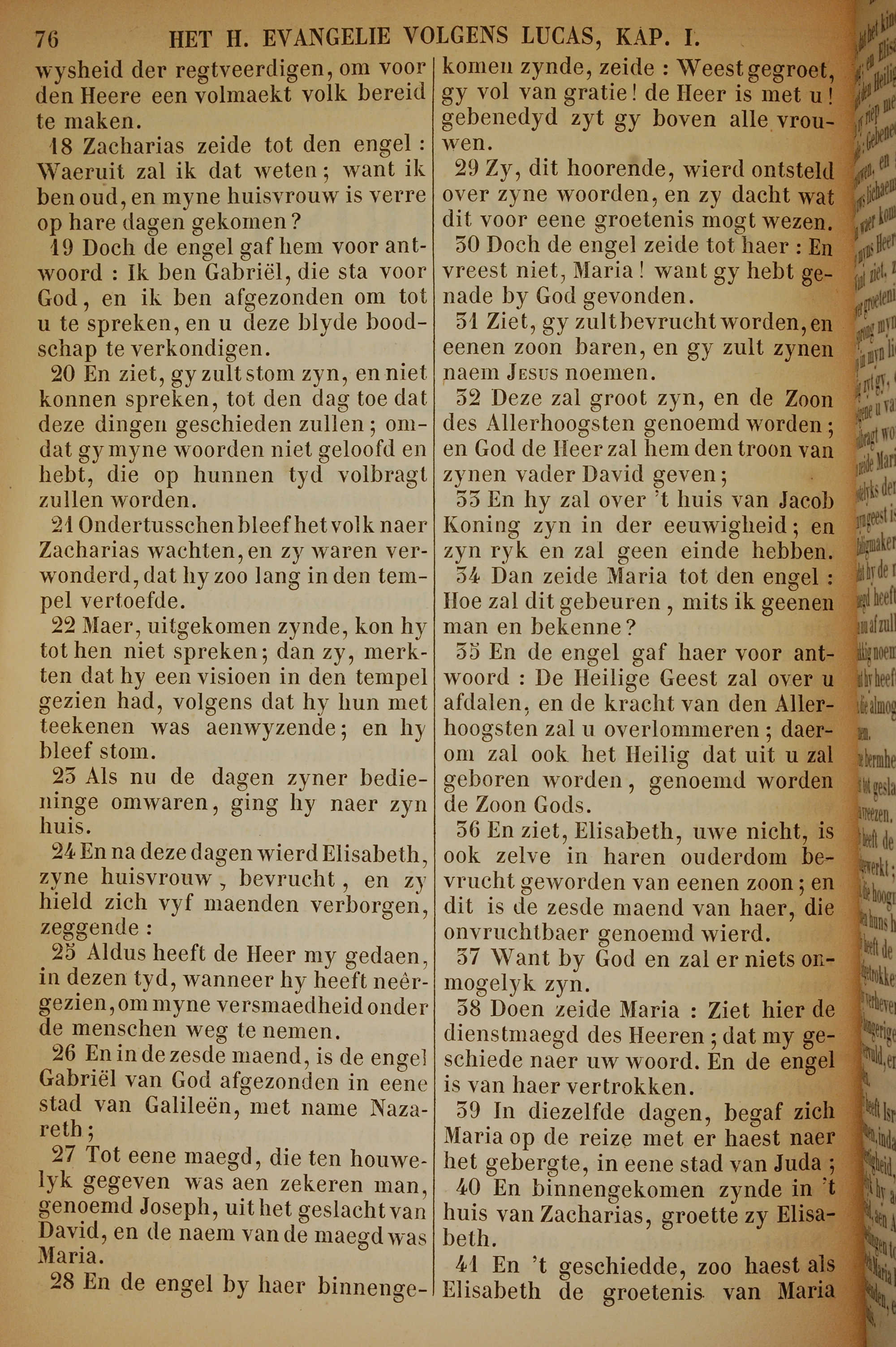 1717年荷蘭文新約全書 路加福音 1 章 18 節到 1 章 41 節