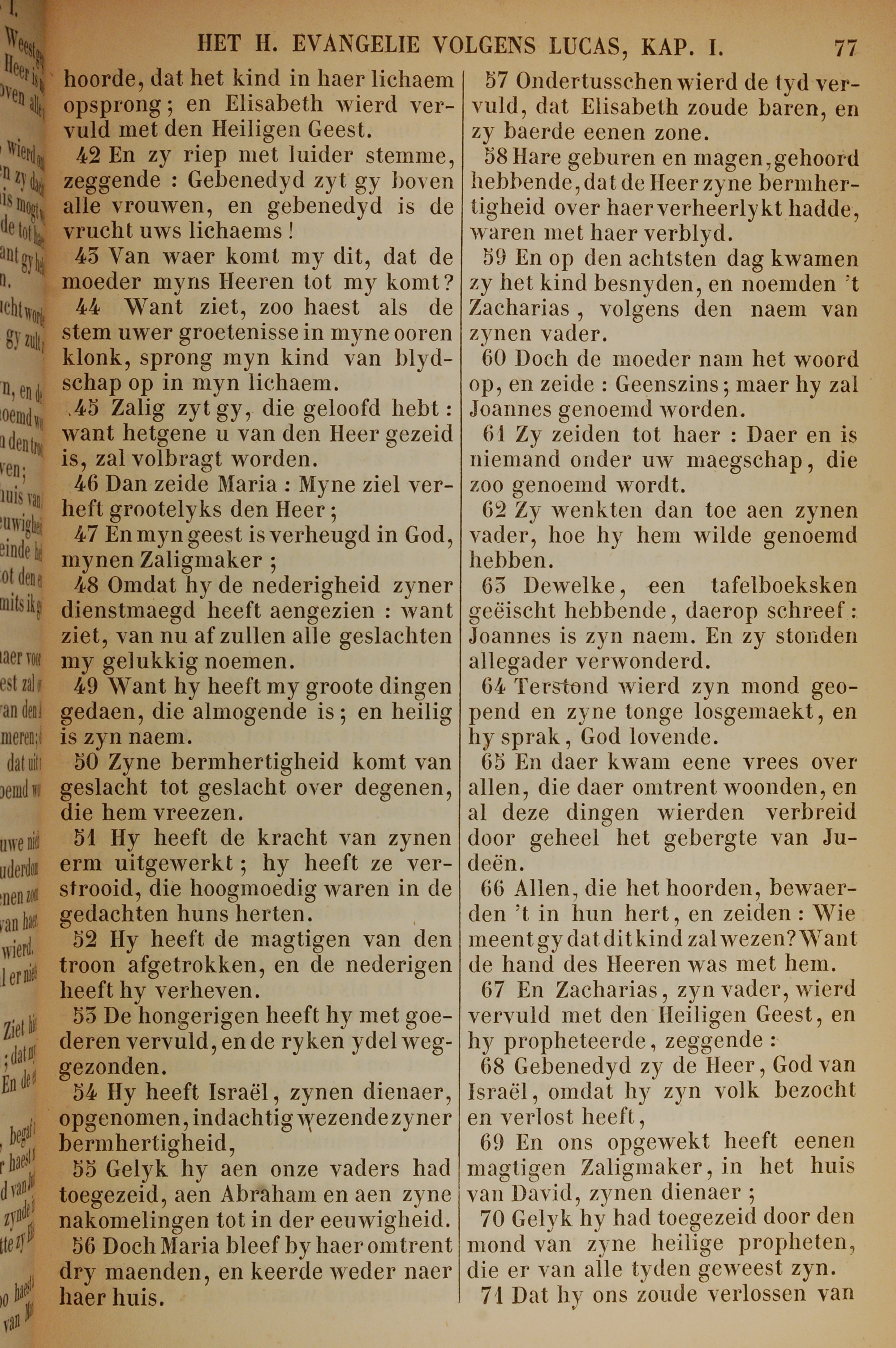 1717年荷蘭文新約全書 路加福音 1 章 42 節到 1 章 71 節