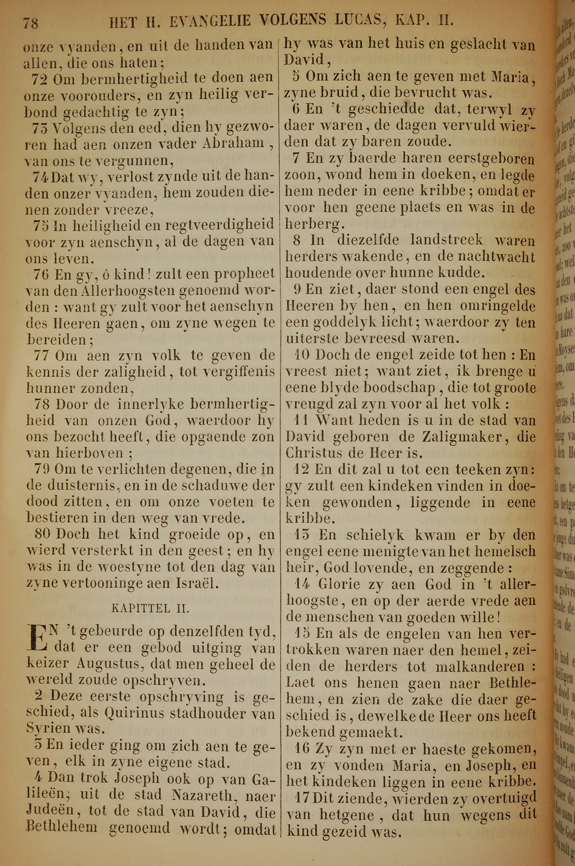 1717年荷蘭文新約全書 路加福音 1 章 72 節到 2 章 17 節