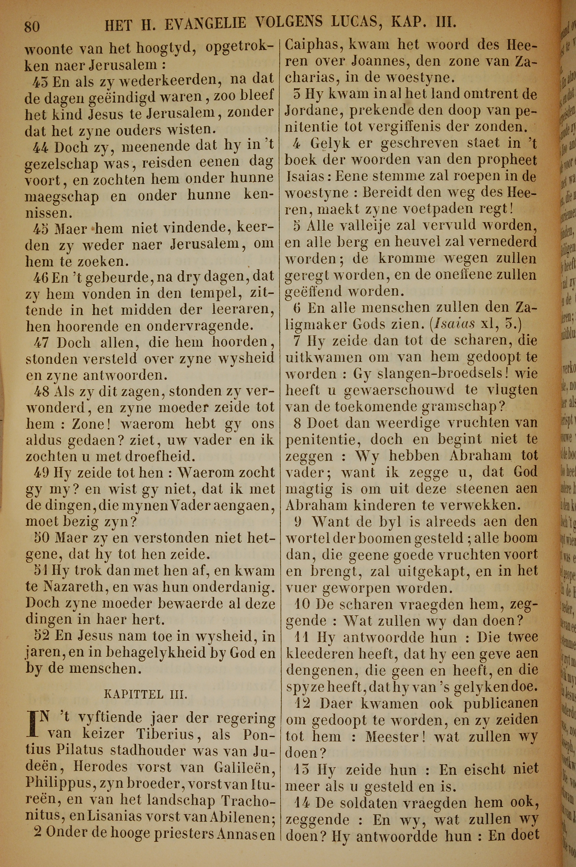 1717年荷蘭文新約全書 路加福音 2 章 43 節到 3 章 14 節