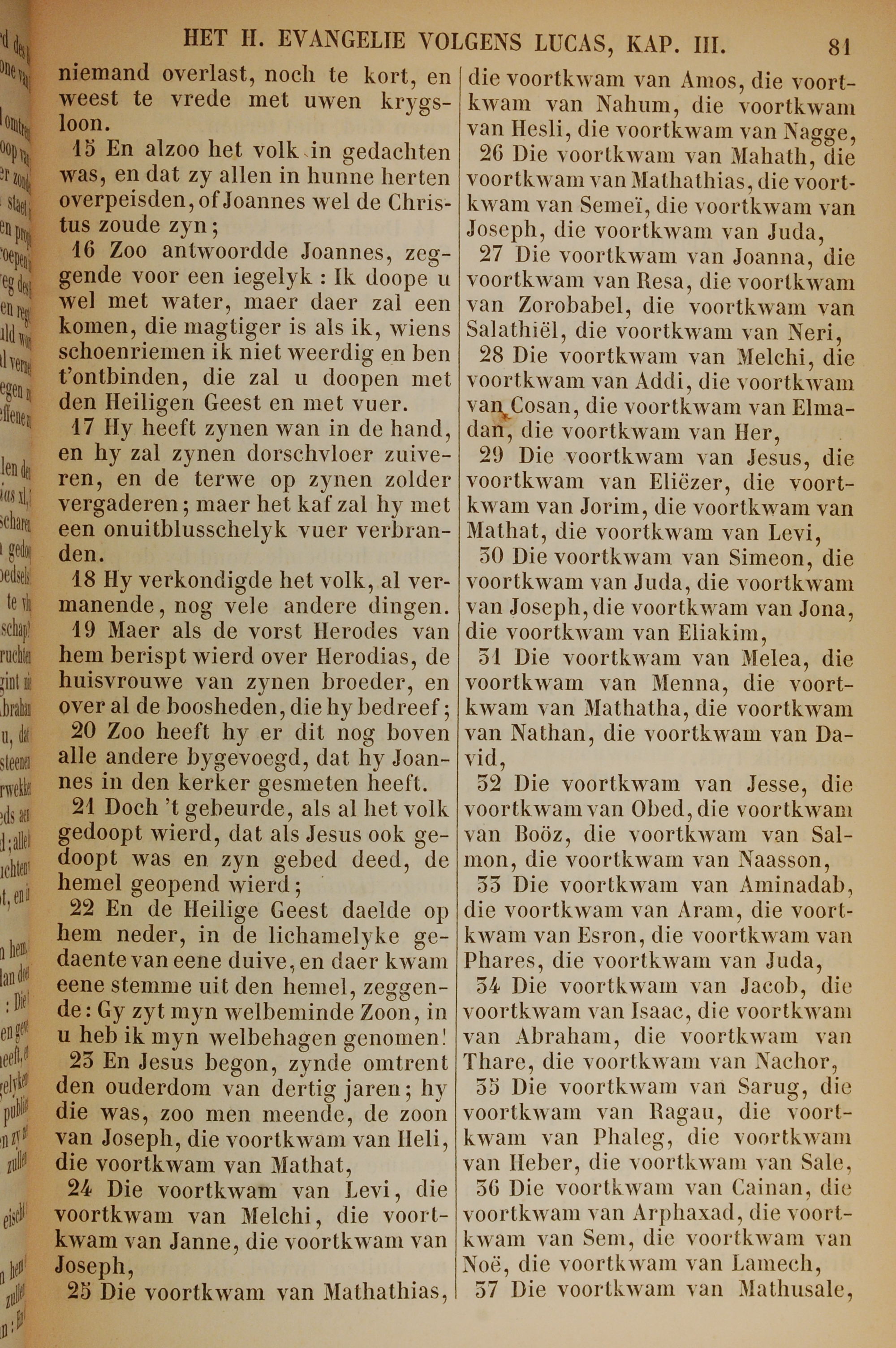 1717年荷蘭文新約全書 路加福音 3 章 15 節到 3 章 37 節