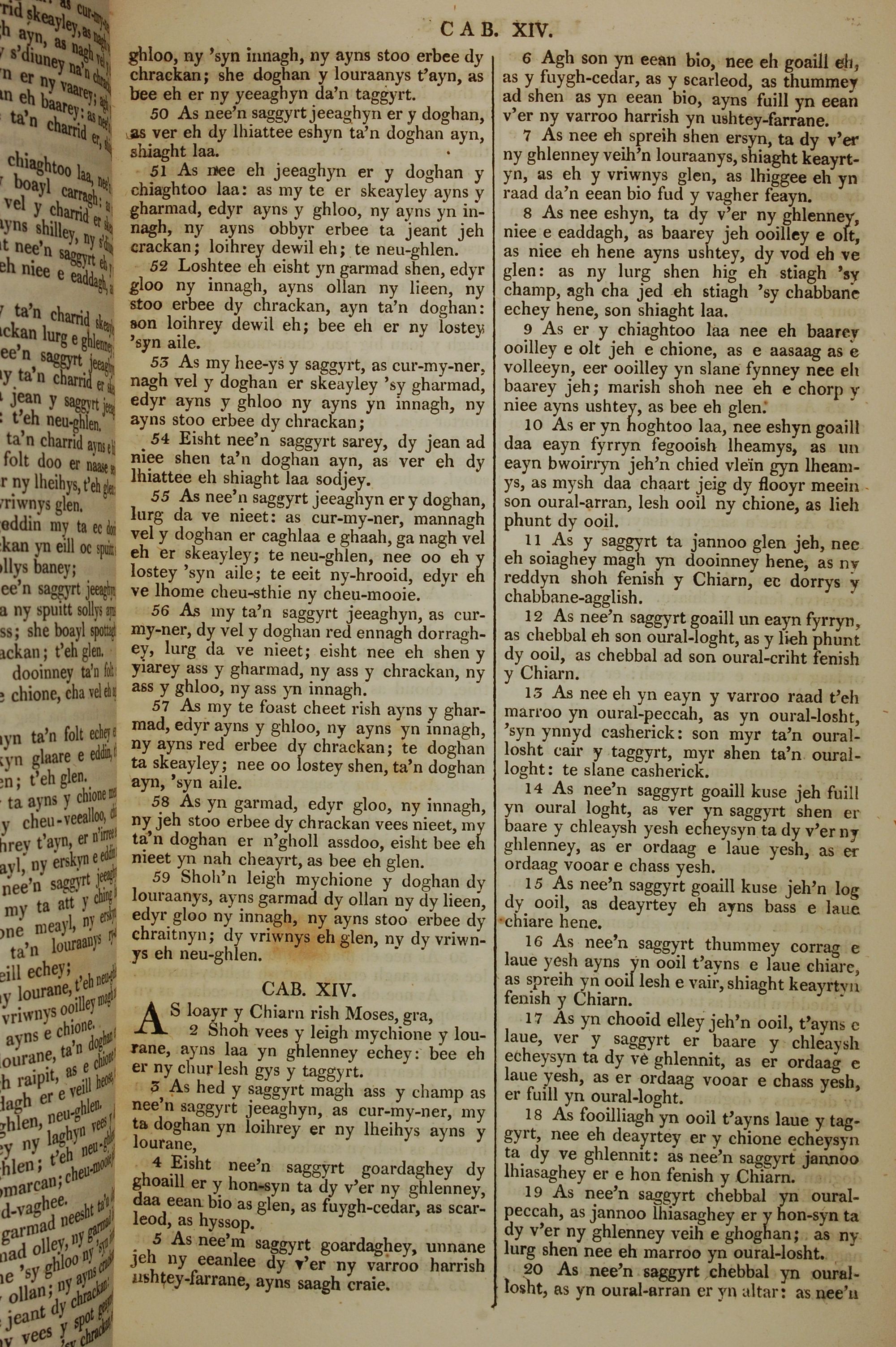 1819年曼島語聖經 利未記 13 章 50 節到 14 章 20 節