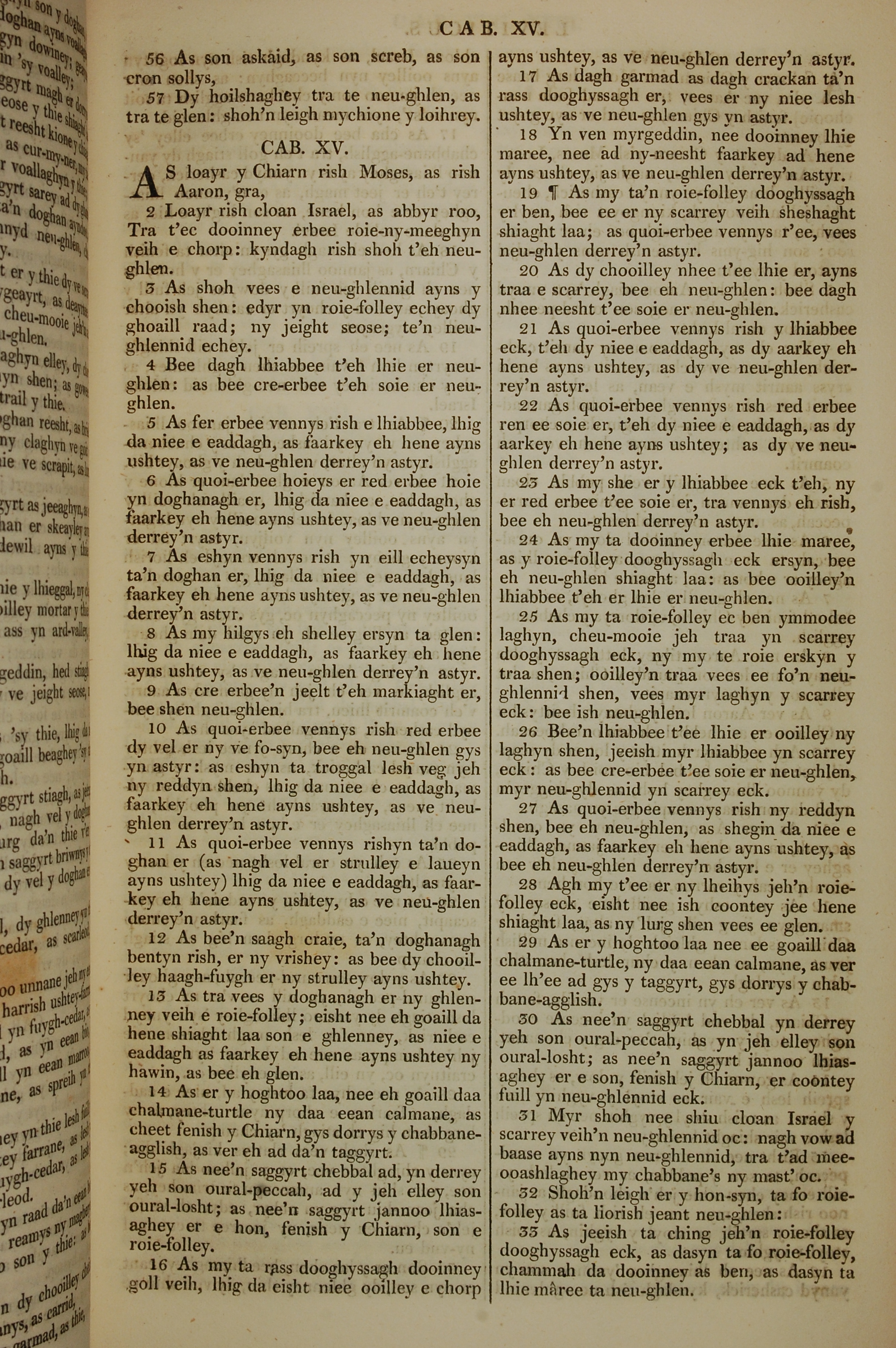 1819年曼島語聖經 利未記 14 章 56 節到 15 章 33 節