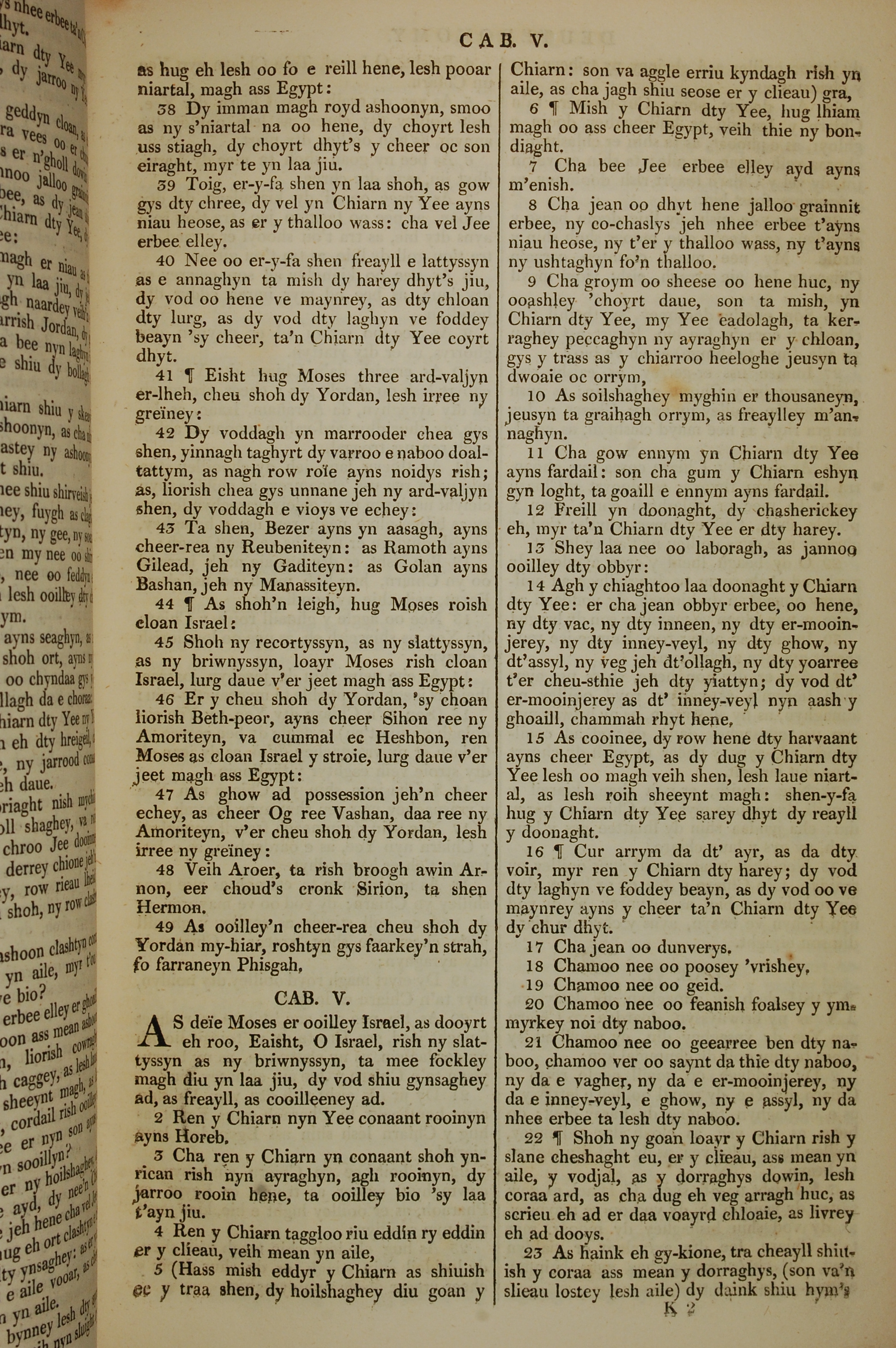 1819年曼島語聖經 申命記 4 章 38 節到 5 章 23 節