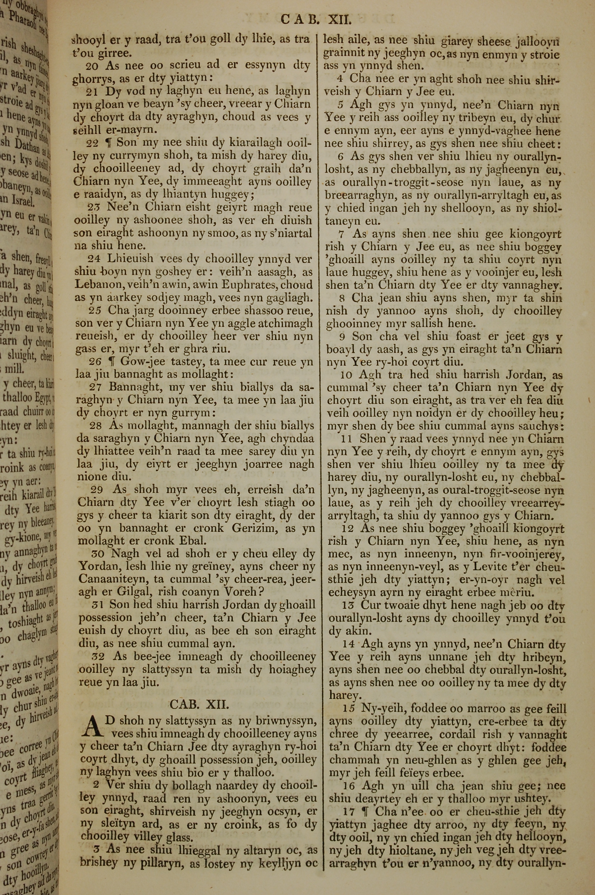 1819年曼島語聖經 申命記 11 章 20 節到 12 章 17 節
