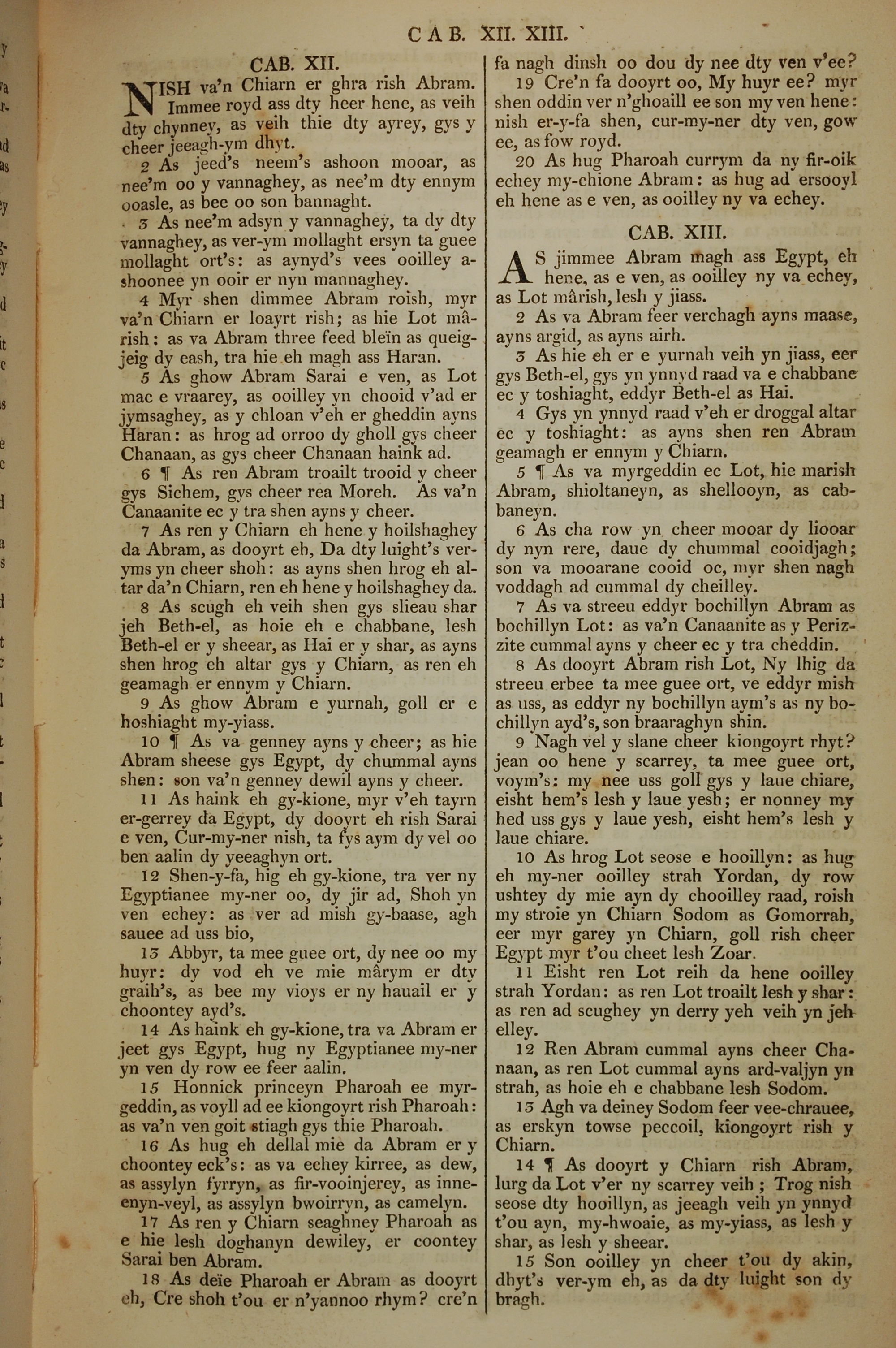 1819年曼島語聖經 創世記 12 章 1 節到 13 章 15 節