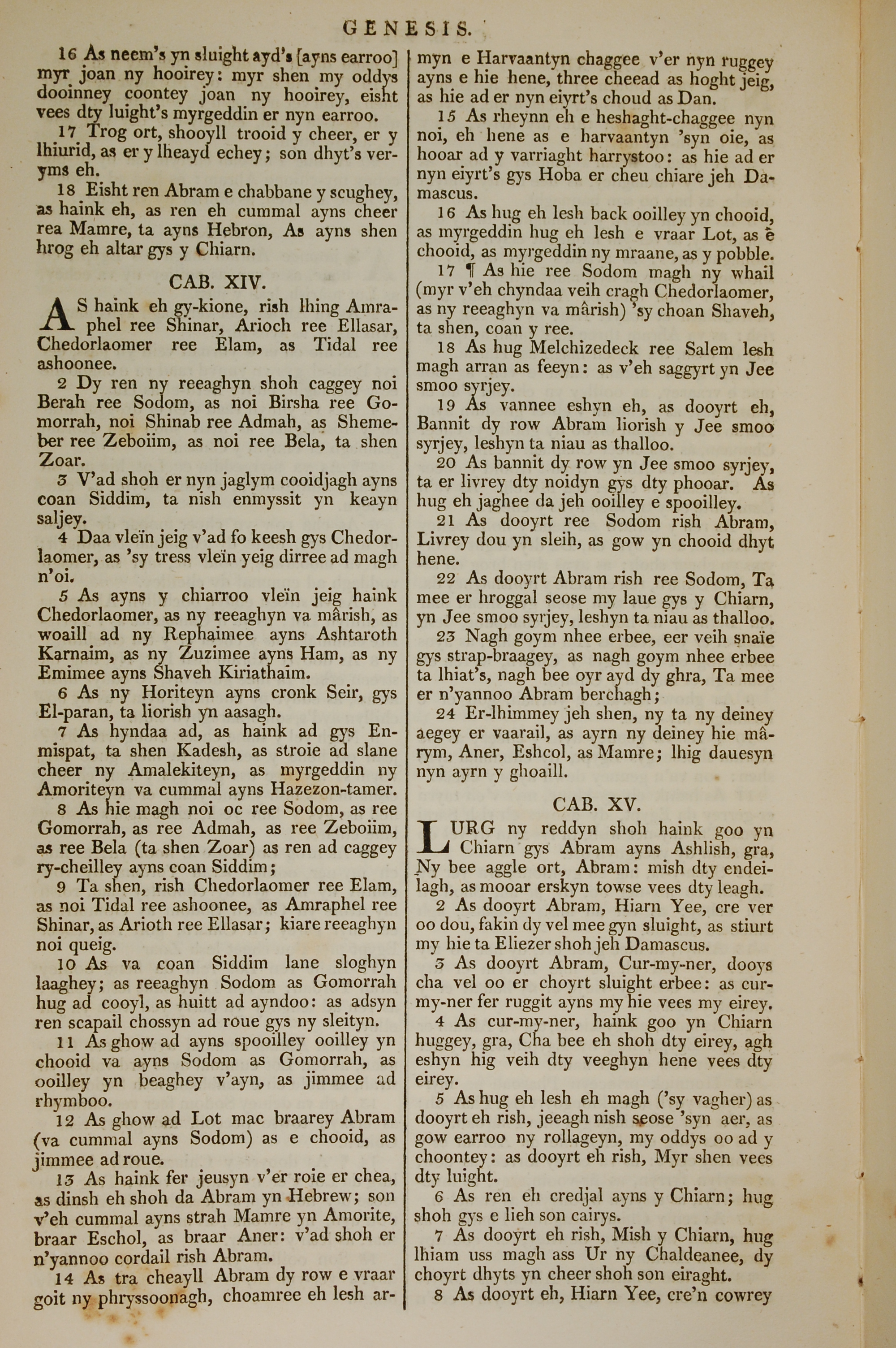 1819年曼島語聖經 創世記 13 章 16 節到 15 章 8 節