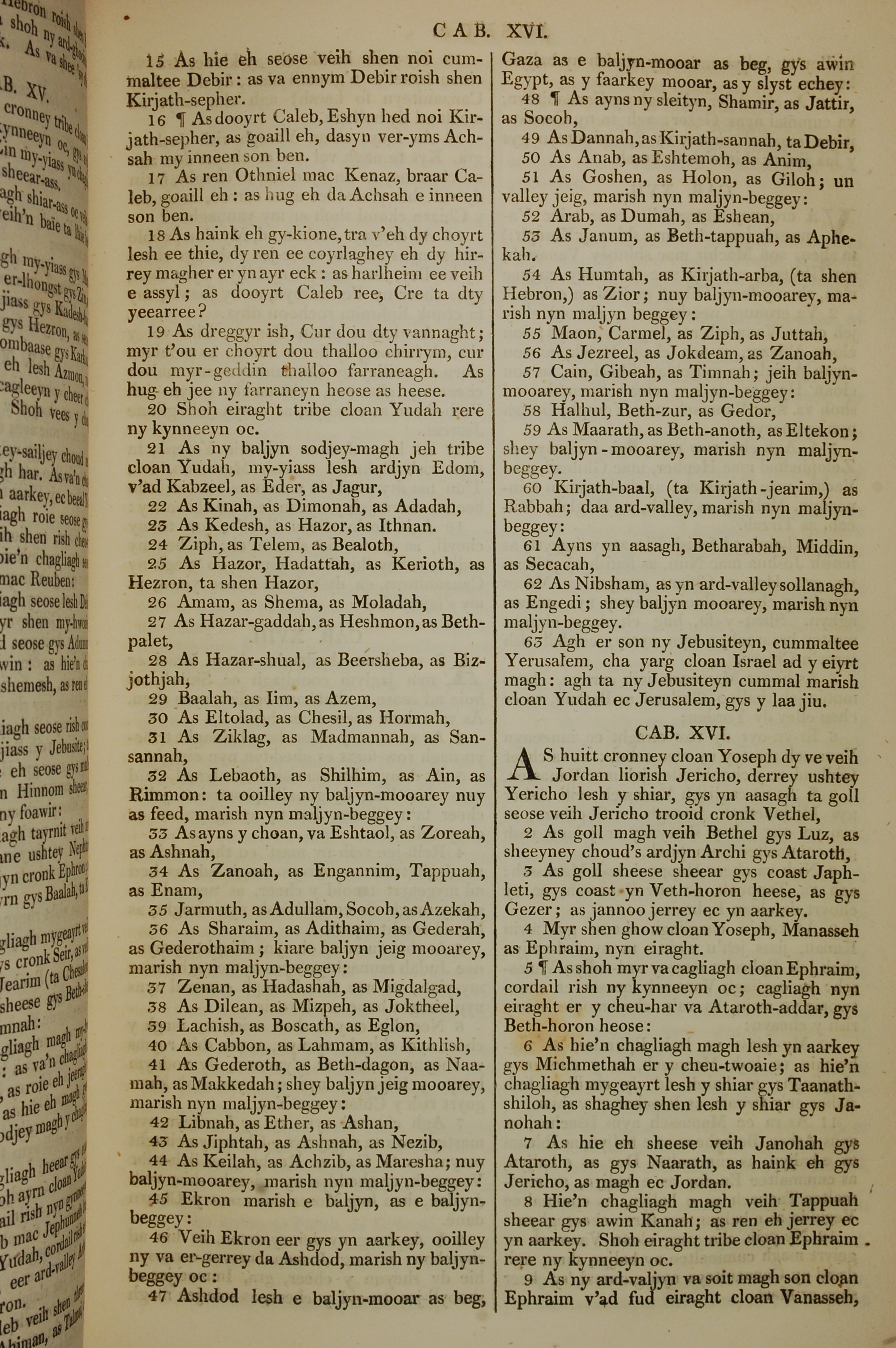1819年曼島語聖經 約書亞記 15 章 15 節到 16 章 9 節