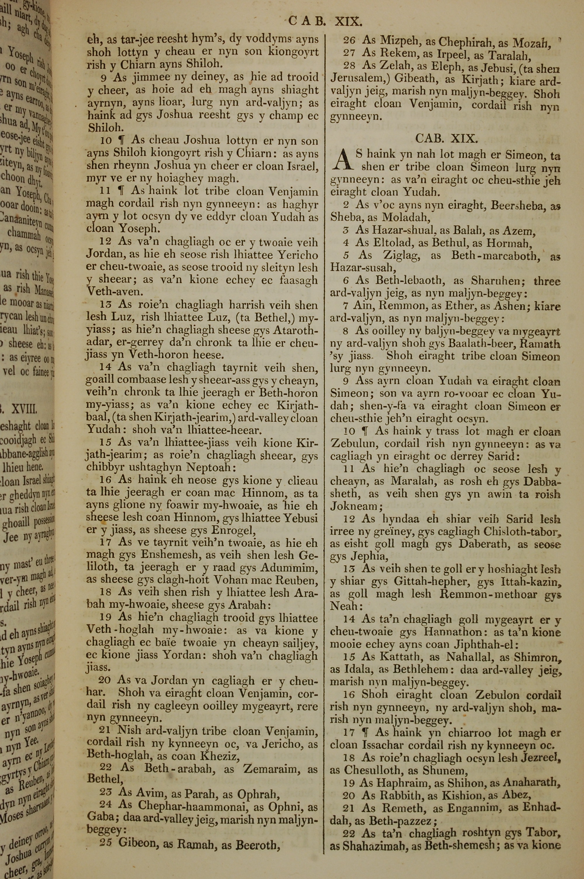 1819年曼島語聖經 約書亞記 18 章 9 節到 19 章 22 節