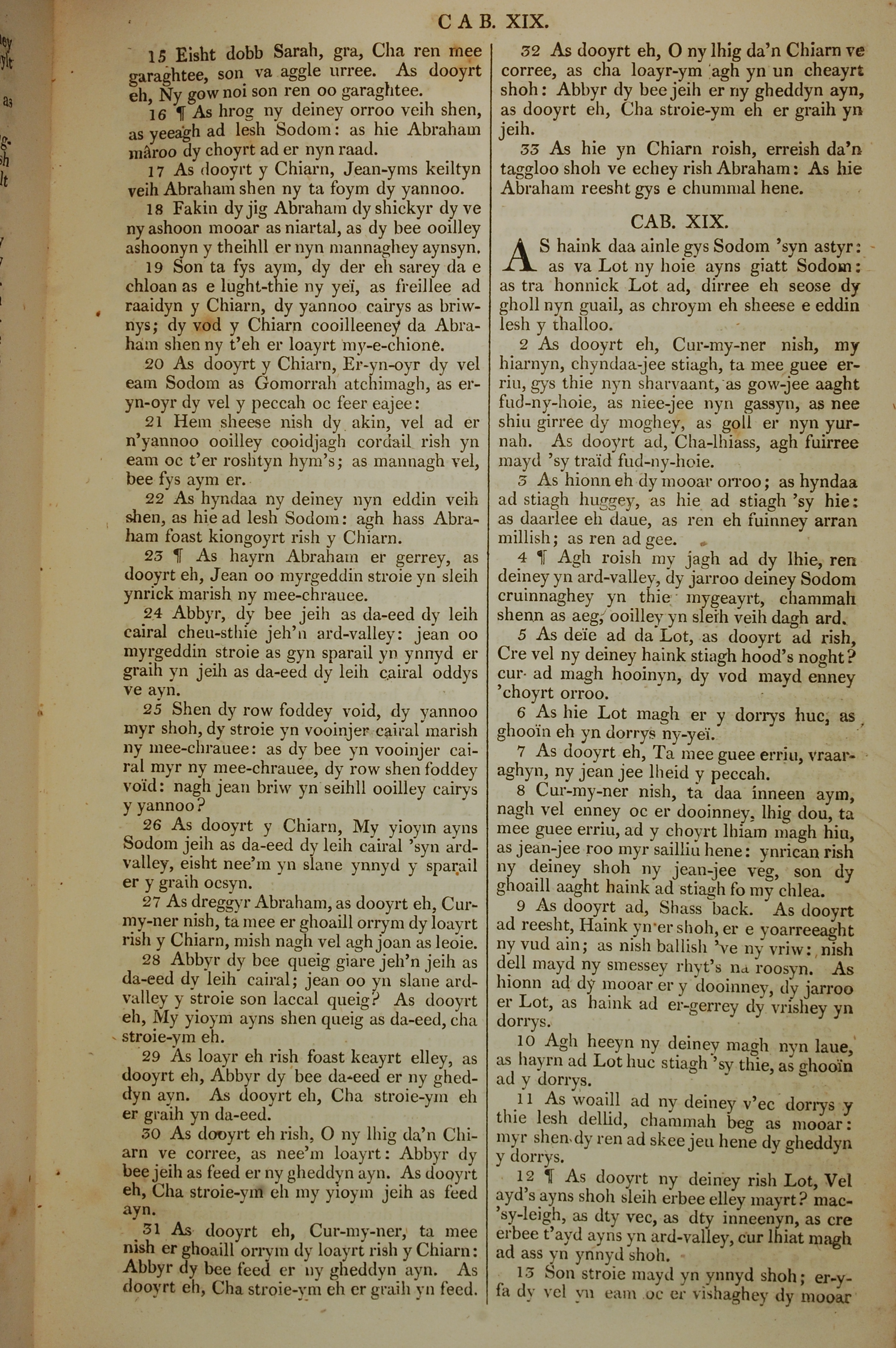 1819年曼島語聖經 創世記 18 章 15 節到 19 章 13 節