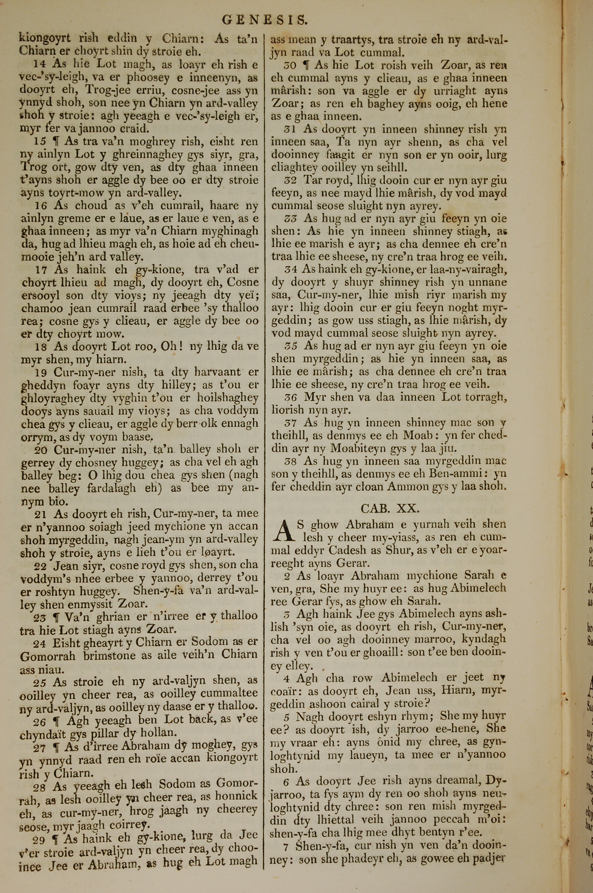 1819年曼島語聖經 創世記 19 章 14 節到 20 章 7 節
