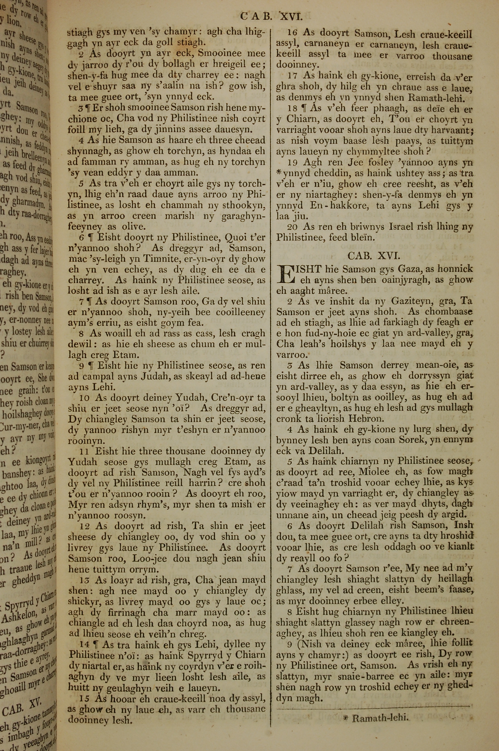 1819年曼島語聖經 士師記 15 章 2 節到 16 章 9 節