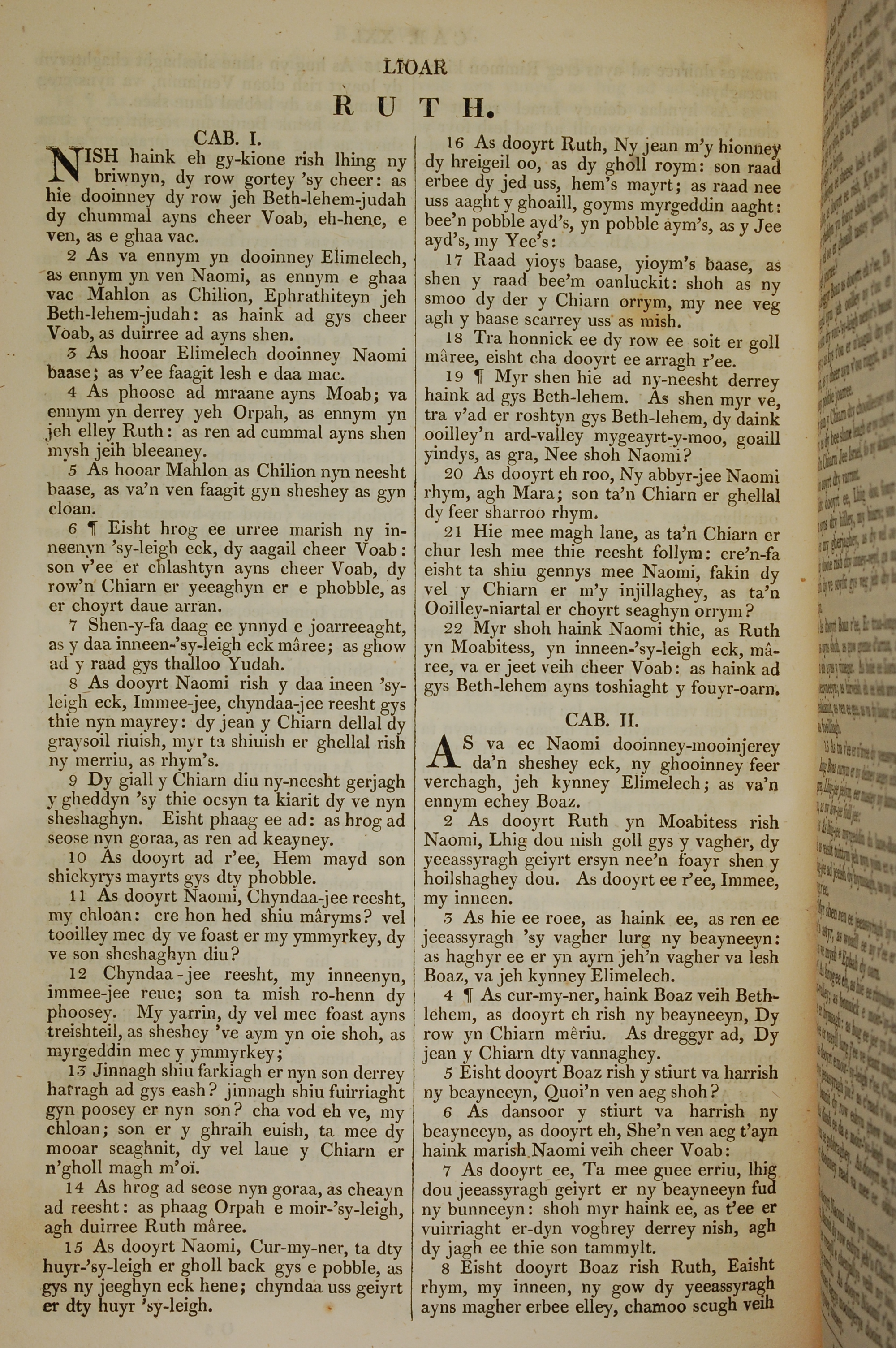 1819年曼島語聖經 路得記 1 章 1 節到 2 章 8 節