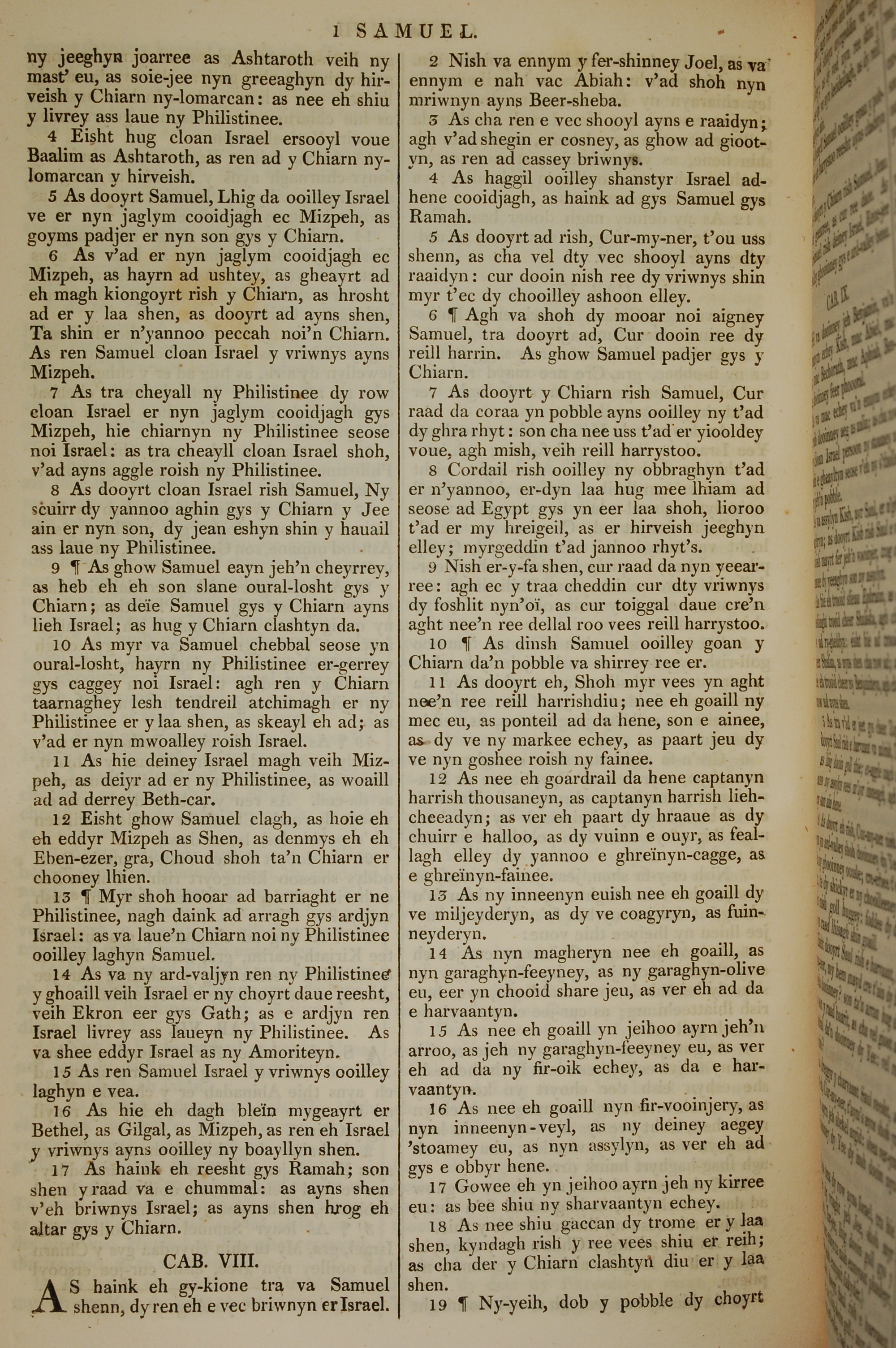 1819年曼島語聖經 撒母耳記上 7 章 4 節到 8 章 19 節