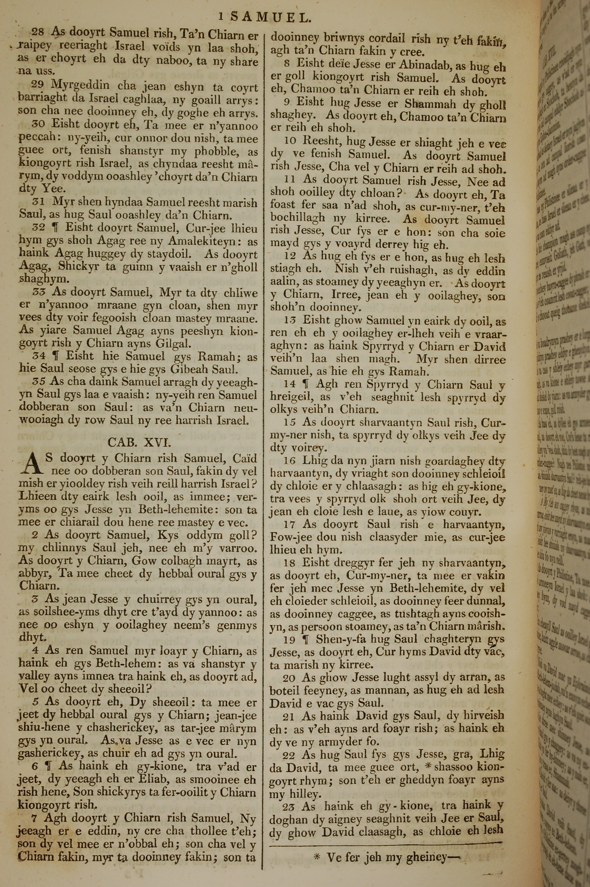 1819年曼島語聖經 撒母耳記上 15 章 28 節到 16 章 23 節