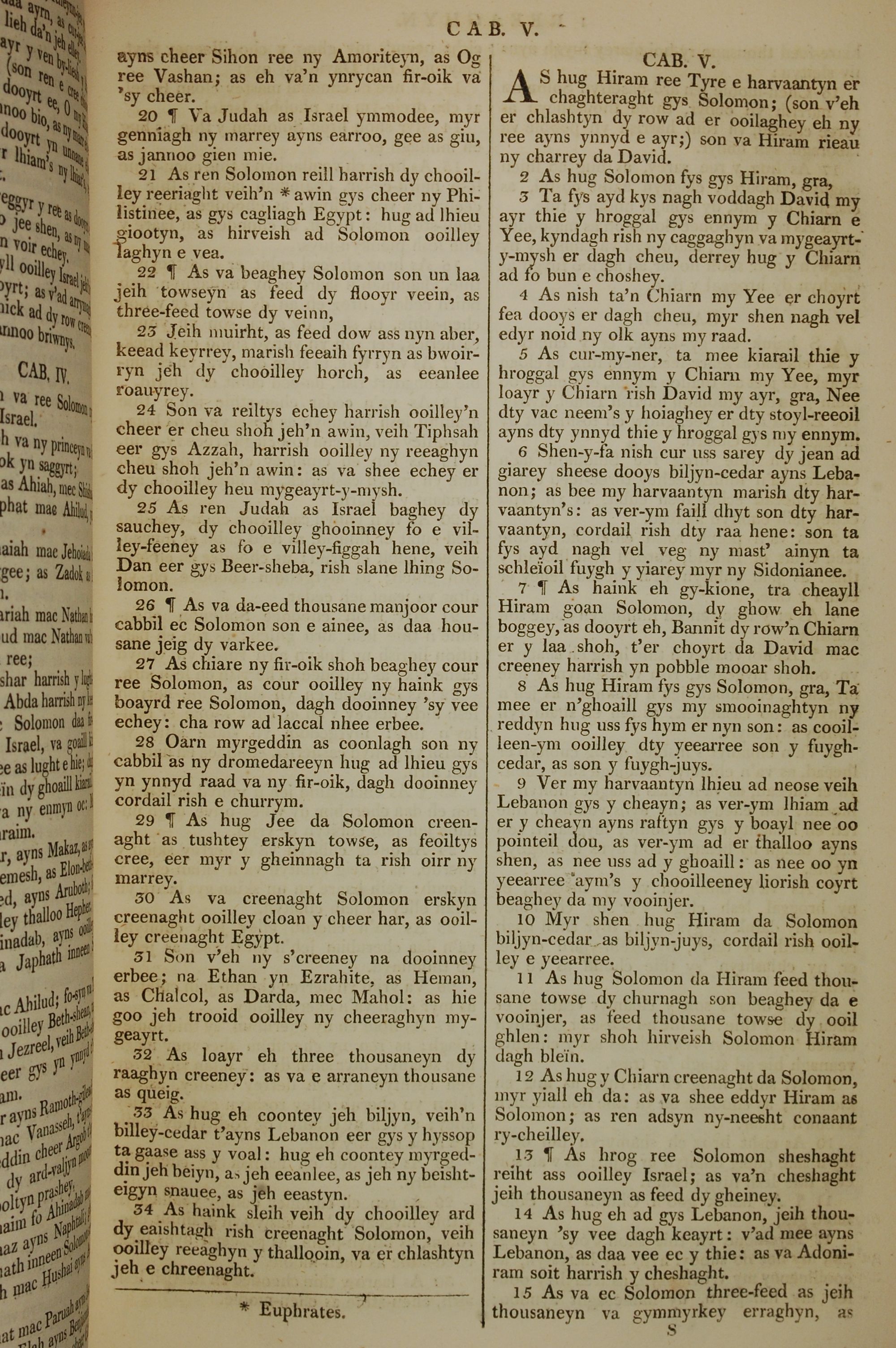 1819年曼島語聖經 列王紀上 4 章 20 節到 5 章 15 節